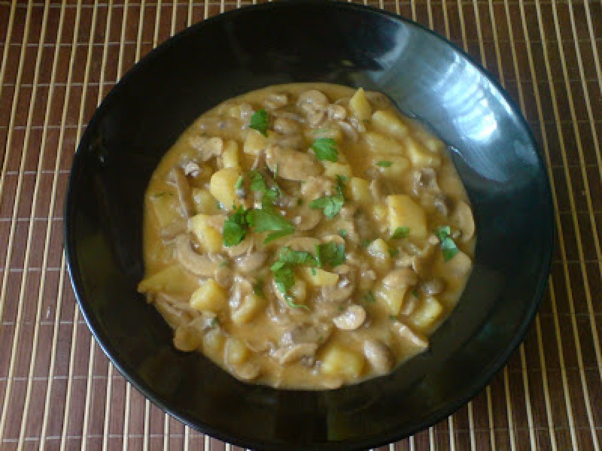 Papricas cu ciuperci Felul principalFoarte ușor45 min Trimite unui prieten Printează pagina Adresează o întrebare autorului Postează o poză cu rețeta gătită de tine Ingrediente 4 750 g ciuperci 75 ml ulei 12 g faina 150 g ceapa 700 g cartofi 100 g smantana patrunjel verde boia dulce,sare,piper