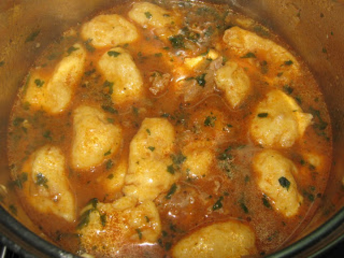 Papricas cu galuste si carne de vita PrecedentulUrmătorul Felul principalFoarte ușor55 min Trimite unui prieten Printează pagina Adresează o întrebare autorului Postează o poză cu rețeta gătită de tine Ingrediente 6 2 linguri bulion sos chili 2-3 cepe 1 capatana usturoi carne de vita condimente patrunjel Pt galuste: 2 oua un praf de sare 2-3 linguri de faina