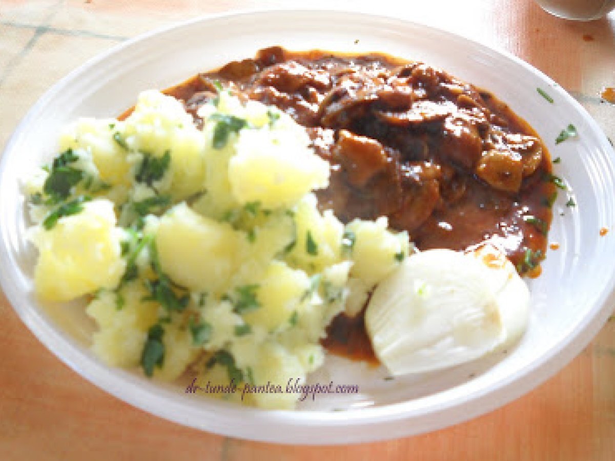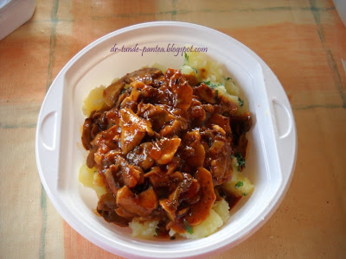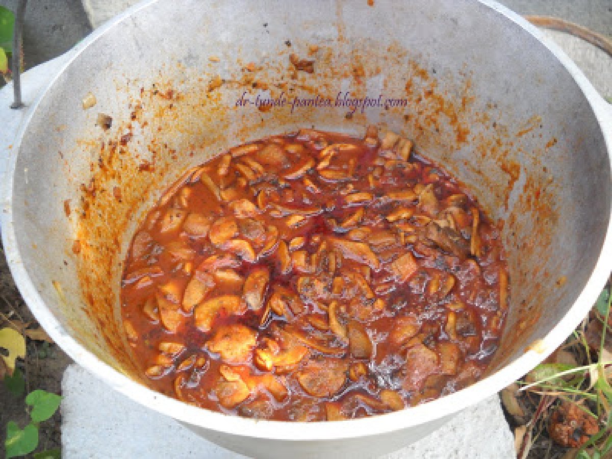 Papricas de ciuperci cu cartofi natur PrecedentulUrmătorul Felul principalFoarte ușor40 min Trimite unui prieten Printează pagina Adresează o întrebare autorului Postează o poză cu rețeta gătită de tine Ingrediente 4 1 kg de ciuperci 2 cepe mijlocii 2 catei de usturoi 2 linguri de boia 150 ml suc de rosii 2 cuburi de legume (knor) piper, sare, rosmarin, busuioc 5-6 cartofi mari o legatura de patrunjel