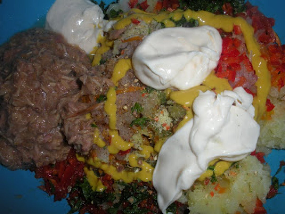 Pasta de peste PrecedentulUrmătorul Felul principalFoarte ușor50 min Trimite unui prieten Printează pagina Adresează o întrebare autorului Postează o poză cu rețeta gătită de tine Ingrediente 4 1 conserva de ton maruntit in ulei 3 cartofi mici 2 morcovi 1 ceapa mica 2 catzei usturoi piper,vegeta,curry patrunjel verde 1 lingura mustar 3 linguri maioneza