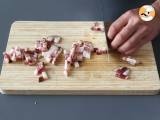 Tăiați feliile de guanciale în bucăți de aproximativ 1 cm lățime.