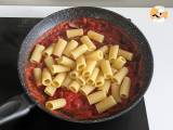Scurgeți pastele (gătite al dente) și turnați-le în tigaia cu sos.