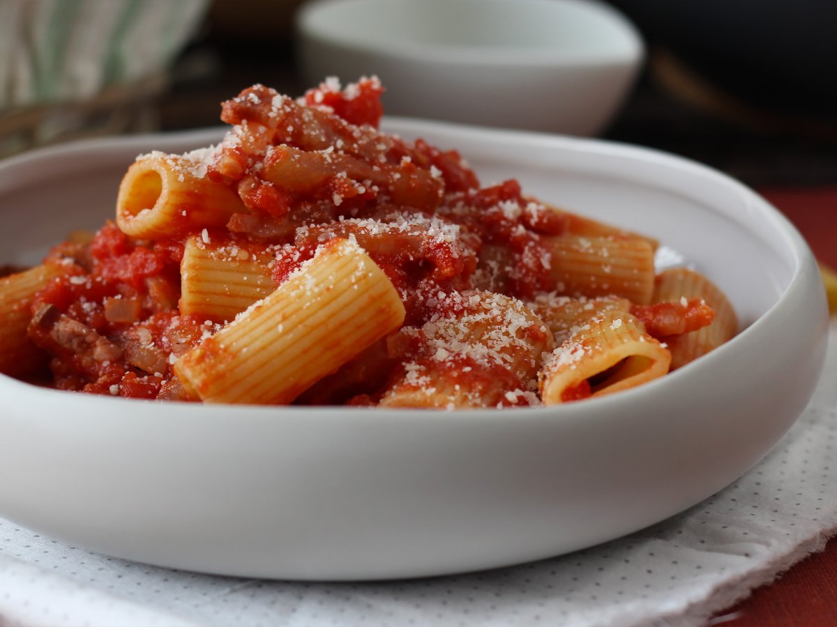 Descoperiți unul dintre mâncărurile emblematice ale tradiției culinare italiene: paste amatriciana! O rețetă simplă care poate fi preparată cu puține ingrediente, dar întotdeauna cu ingrediente de calitate! Amatriciana își ia numele de la orășelul Amatrice, unde se spune că această rețetă a fost preparată de ciobani folosind doar pecorino, Amatrice guanciale și piper negru. Abia secole mai târziu a fost adăugat sos de roșii. Combinația de guanciale crocant, sos de roșii și pecorino romano oferă un fel de paste, ultra delicios și reconfortant :-)