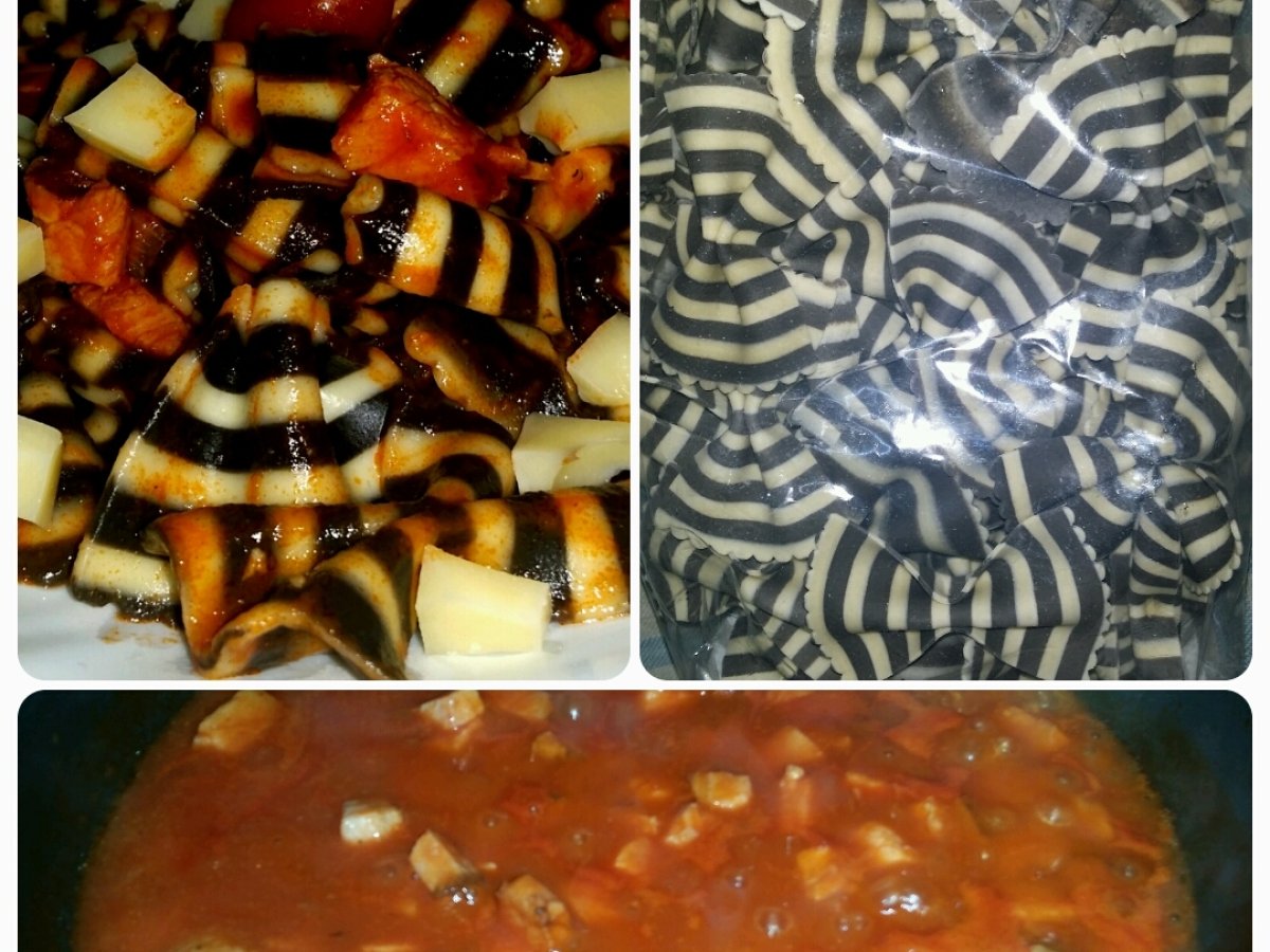 O mancare completa atat pentru cei mici cat si pentru cei mari. Am folosit farfalle italiene aduse de prieteni din vacanta lor in Italia.