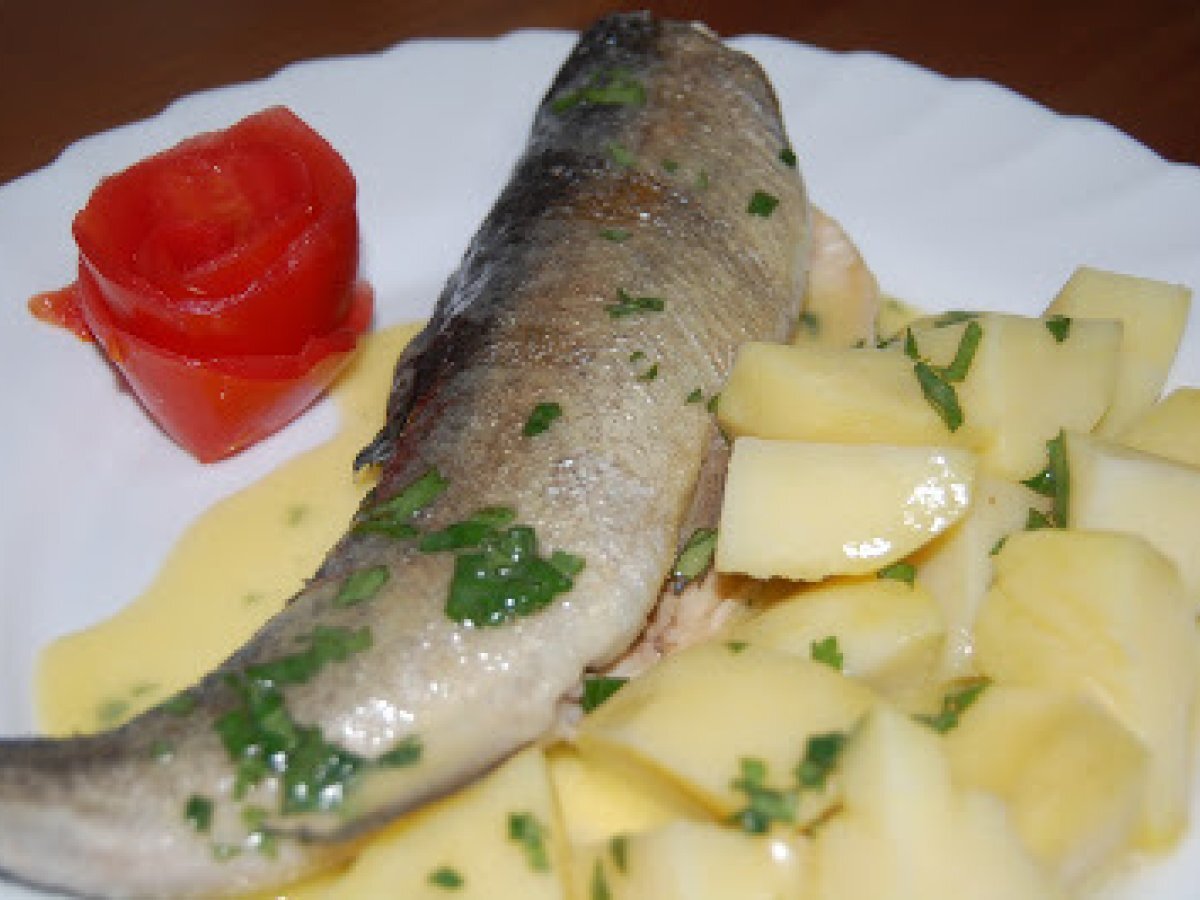 Am inceput sa avem in meniu macar o data pe saptamana peste. Intr-o carte de bucate mai batrana decat mine am gasit aceasta reteta. Se face repede si este delicioasa! In reteta este specficat "vas special pentru peste" si cum nu am avut, m-am descurcat cu o oala pentru paste.