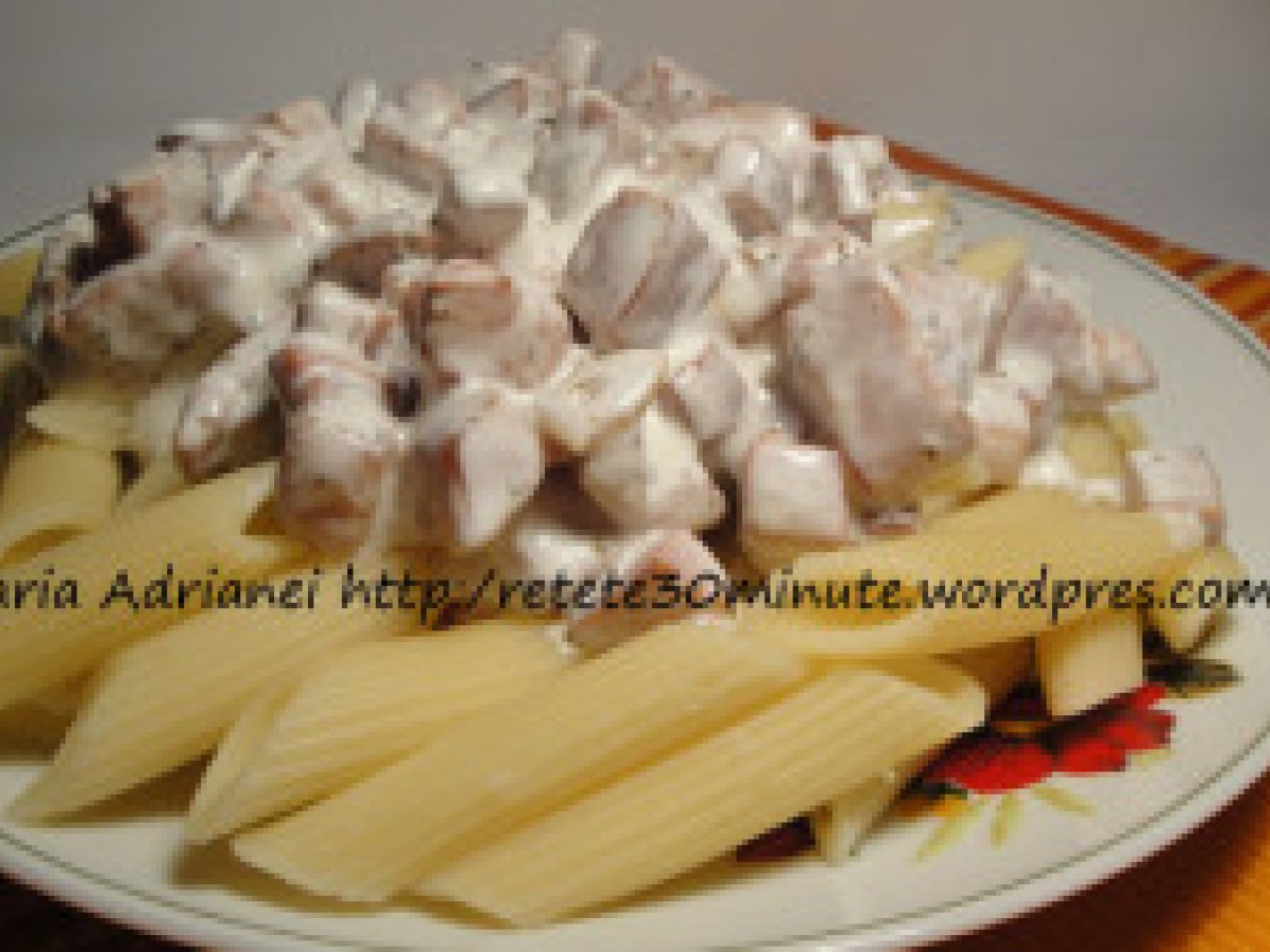 Penne cu smantana si bacon