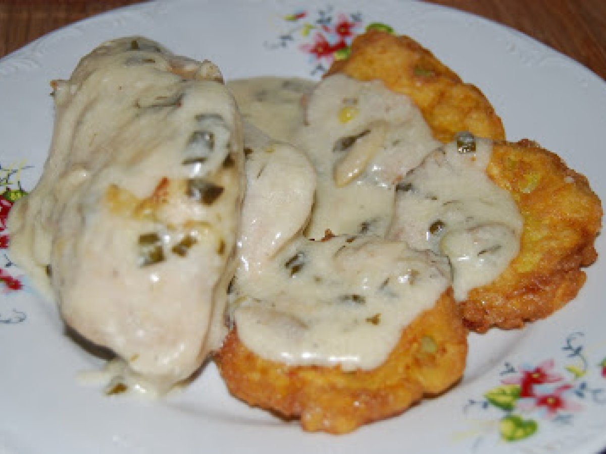 Pept de pui cu sos alb - la cuptor PrecedentulUrmătorul Felul principalFoarte ușor1 h 40 m253 Kcal Trimite unui prieten Printează pagina Adresează o întrebare autorului Postează o poză cu rețeta gătită de tine Ingrediente 2 1 piept de pui dezosat si fara piele 2 ciuperci proaspete Champignon ceapa verde marar si patrunjel proaspat 10 linguri smantana 1 lingura faina sare, piper