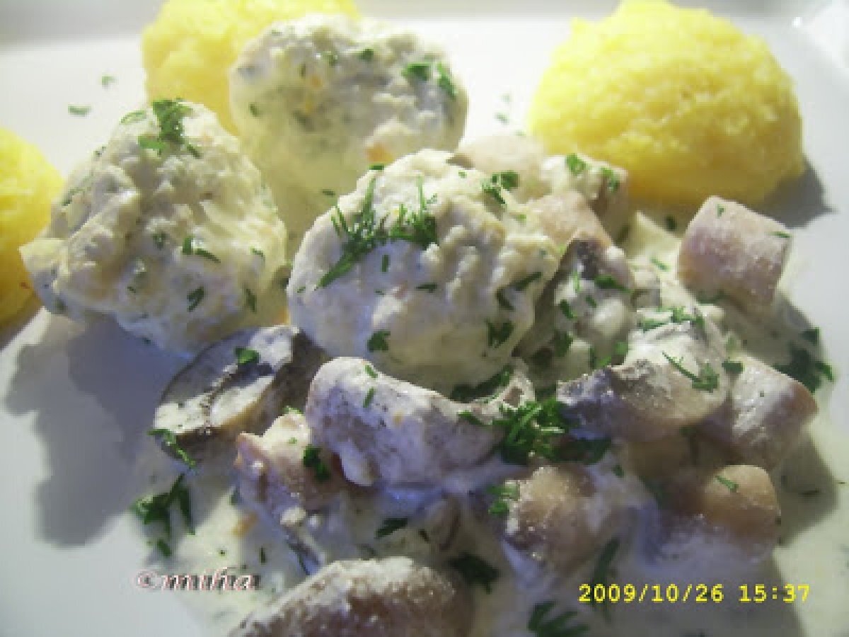 Perisoare cu sos de smantana si ciuperci PrecedentulUrmătorul Felul principalFoarte ușor1 oră675 Kcal Trimite unui prieten Printează pagina Adresează o întrebare autorului Postează o poză cu rețeta gătită de tine Ingrediente 2 Pentru perisoare: 1 piept de pui 1 morcov 2 catei usturoi 1 ou patrunjel sare si piper alb - Pentru sos: 300 g smantana 400 g ciuperci 1 ceapa 3 linguri ulei de masline marar sare si piper