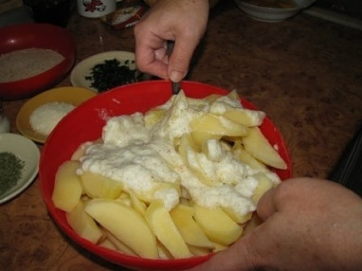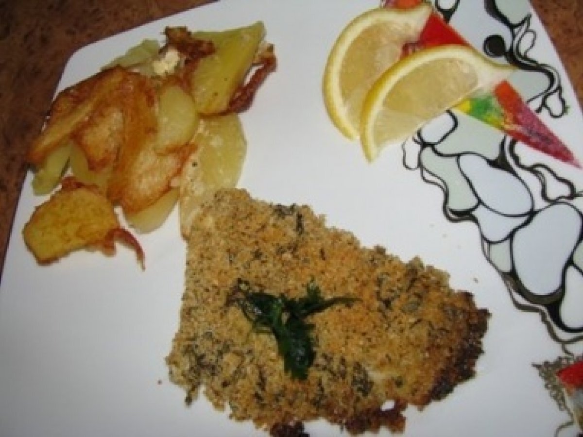 Peste cu cartofi prajiti PrecedentulUrmătorul Felul principalFoarte ușor1 h 20 m Trimite unui prieten Printează pagina Adresează o întrebare autorului Postează o poză cu rețeta gătită de tine Ingrediente 4 Pentru cartofii prajiti 650 g cartofi, decojiti 1 lingura ulei 1 albus sare si piper Pentru peste 4 fileuri de cod sau pangasius, cam 125 g fiecare 4 linguri maioneza 50 g pesmet 1 lingura unt, topit 1 lingura parmezan, ras 1 lingura patrunjel, tocat 1 lingura tarhon, tocat sare si piper negru sau condiment de peste frunze de patrunjel proaspat si felii de lamaie, pentru ornat