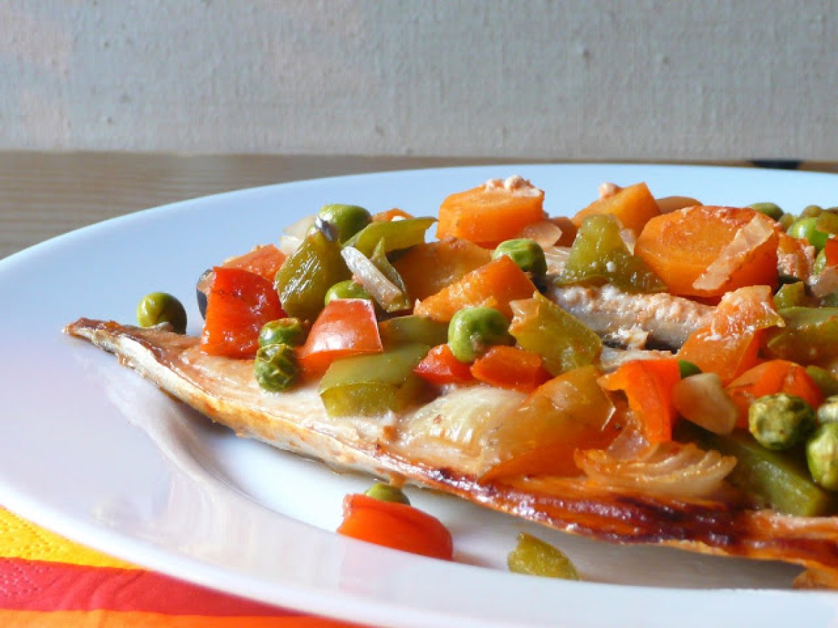 Peste la cuptor cu legume Felul principalFoarte ușor40 min Trimite unui prieten Printează pagina Adresează o întrebare autorului Postează o poză cu rețeta gătită de tine Ingrediente 6 file de peste morcovi ceapa ceapa verde ardei mazare fasole verde ciuperci usturoi un pahar de vin alb sare, piper foi de dafin
