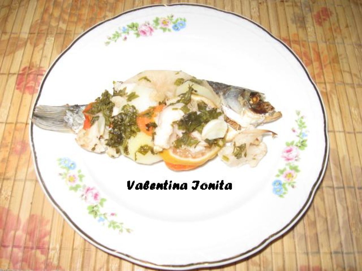 Peste sarat si uscat rasol cu legume la cuptor PrecedentulUrmătorul Felul principalFoarte ușor40 min Trimite unui prieten Printează pagina Adresează o întrebare autorului Postează o poză cu rețeta gătită de tine Ingrediente 2 10 buc. caras uscat si sarat 2 mere 2 buc. morcov 4 cartofi potriviti 2 lamai o legatura patrunjel o capatana mai mare de usturoi sau dupa gust cateva buchetele de conopida 100 ml vin alb ulei de masline piper,nucsoara,ienibahar dupa gust