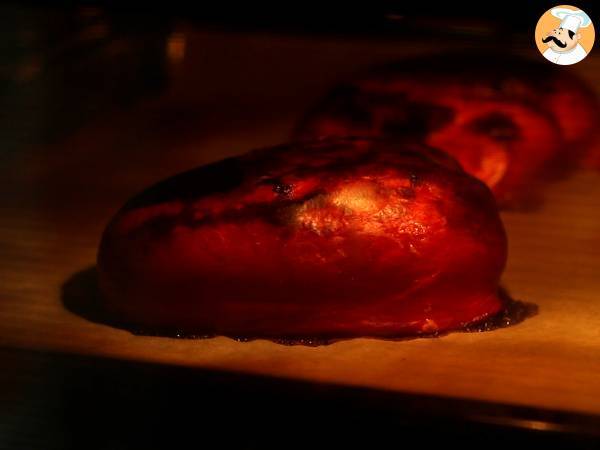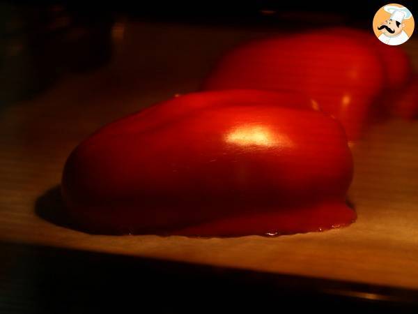 Dați la cuptor pentru aproximativ 20 de minute: aveți grijă de ardei, coaja trebuie să fie neagră, iar pulpa fragedă.
