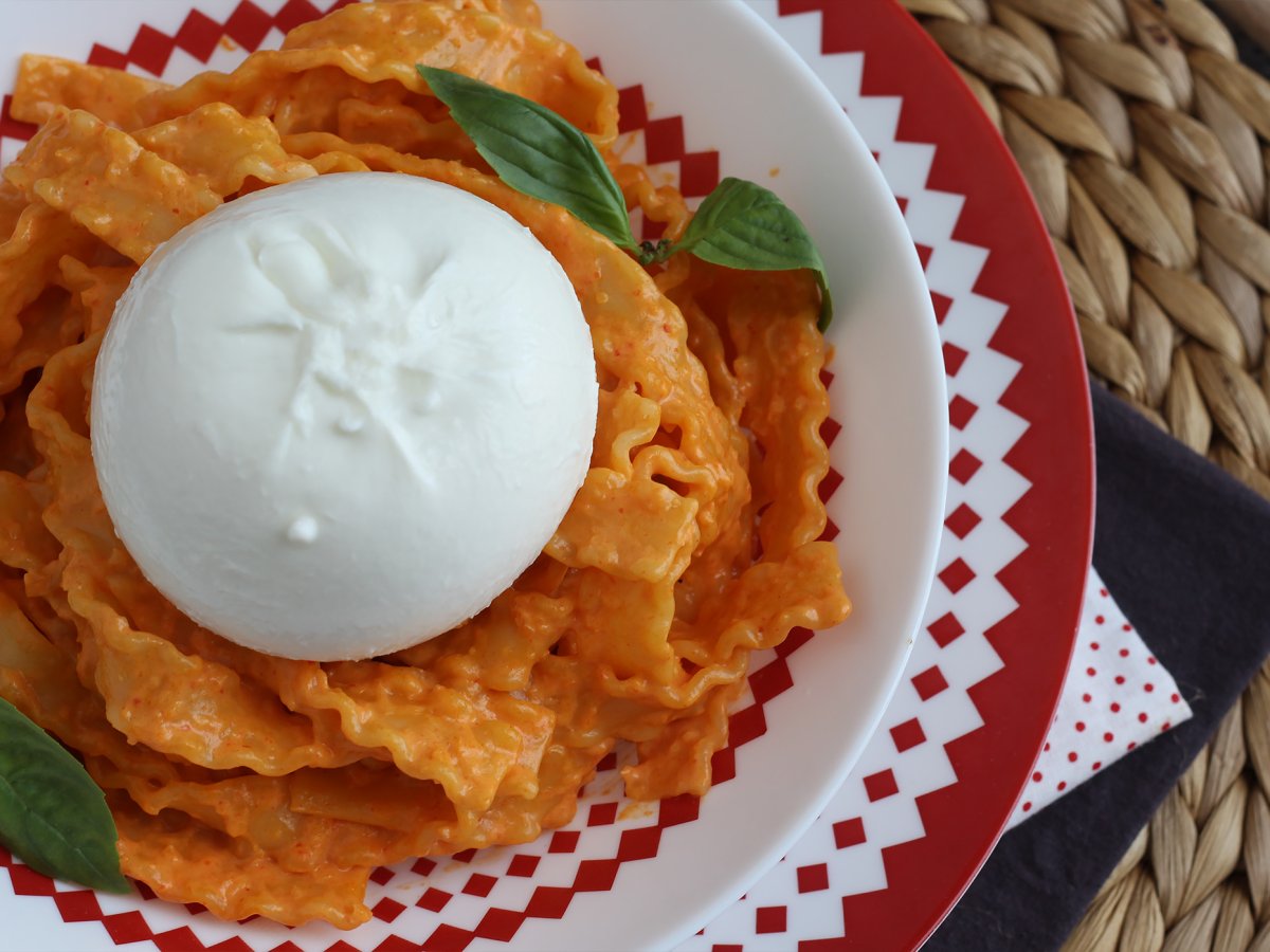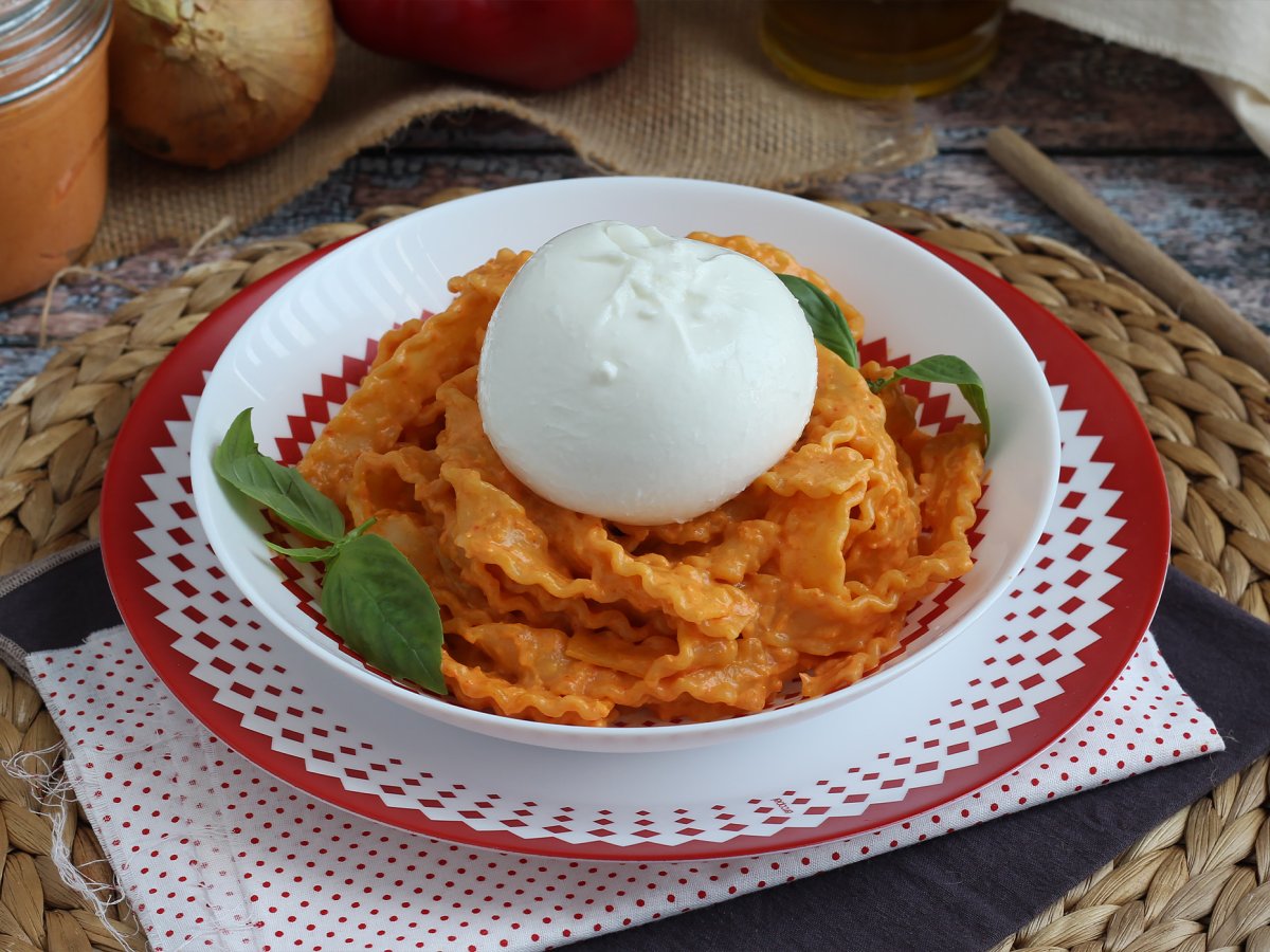 Cunoașteți pesto-ul clasic, de busuioc, lăsați-vă tentat de pesto-ul calabrez! O minune făcută din ardei gras și ricotta, un deliciu pentru a-ți însoți pastele, fără a uita de o burrata super cremoasă. Detaliile de realizare, mai jos ↓