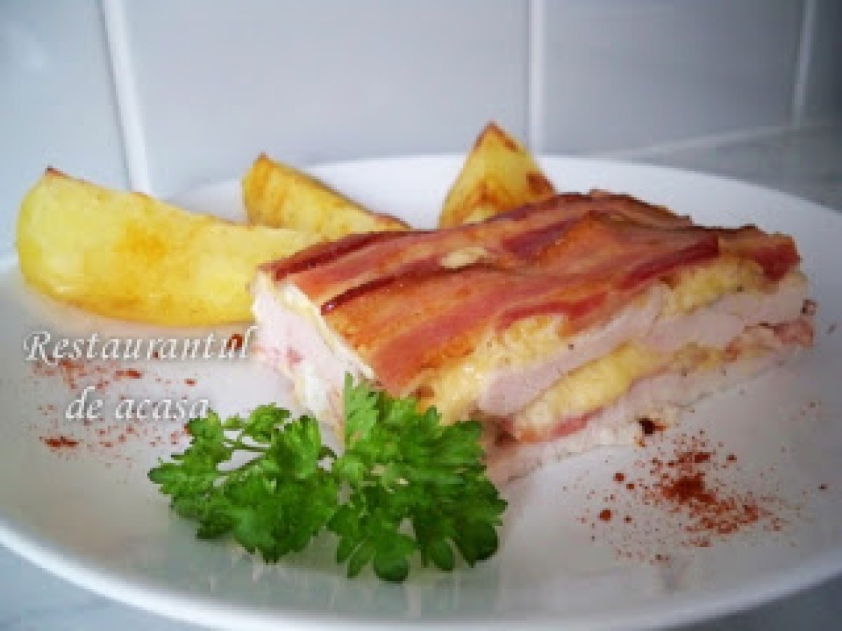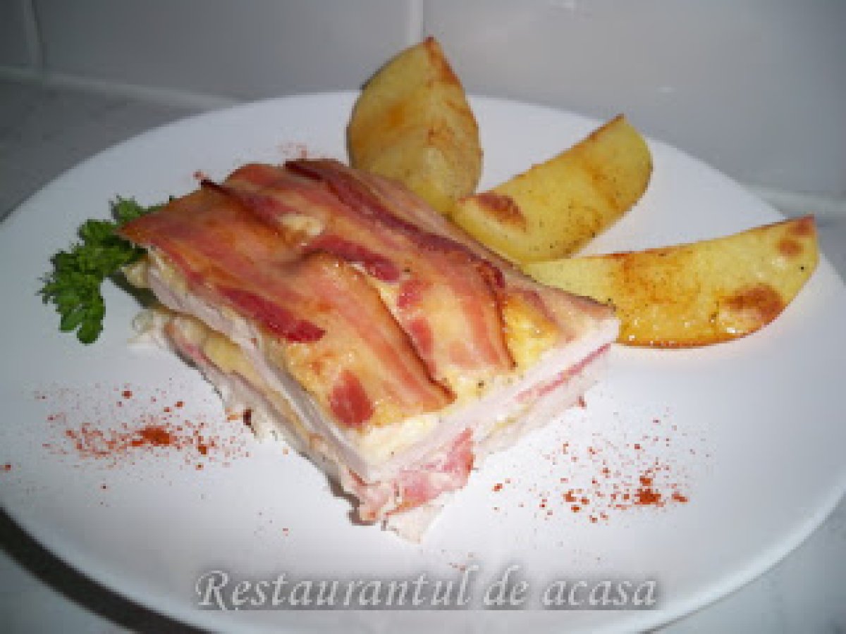Piept de pui cu bacon si branza edam PrecedentulUrmătorul Felul principalFoarte ușor35 min Trimite unui prieten Printează pagina Adresează o întrebare autorului Postează o poză cu rețeta gătită de tine Ingrediente 4 500 g piept de pui dezosat , 250 g bacon felii , 50 g branza Edam 2 oua , unt , sare , piper.