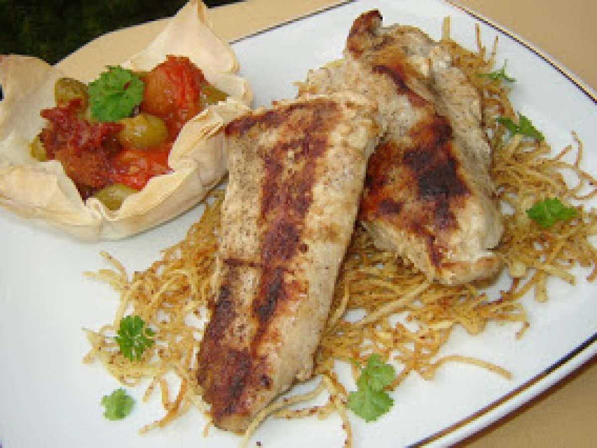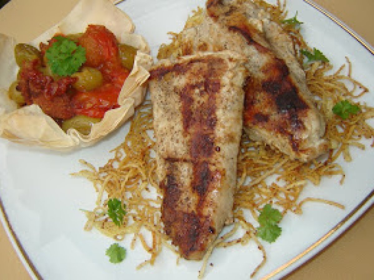 Piept de pui cu garnitura de rosii si struguri PrecedentulUrmătorul Felul principalFoarte ușor35 min Trimite unui prieten Printează pagina Adresează o întrebare autorului Postează o poză cu rețeta gătită de tine Ingrediente 4 un piept de pui 2 rosii medii 200 g boabe de struguri albi 2 linguri de pesmet 1 lingura de pasta de tomate o lingurita de miere 100 ml ulei sare,piper 2-3 foi de placinta