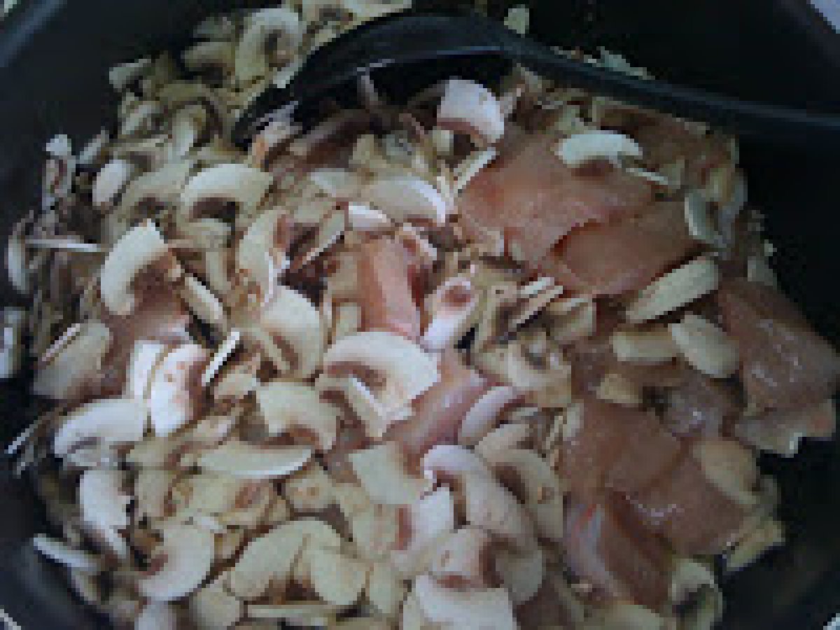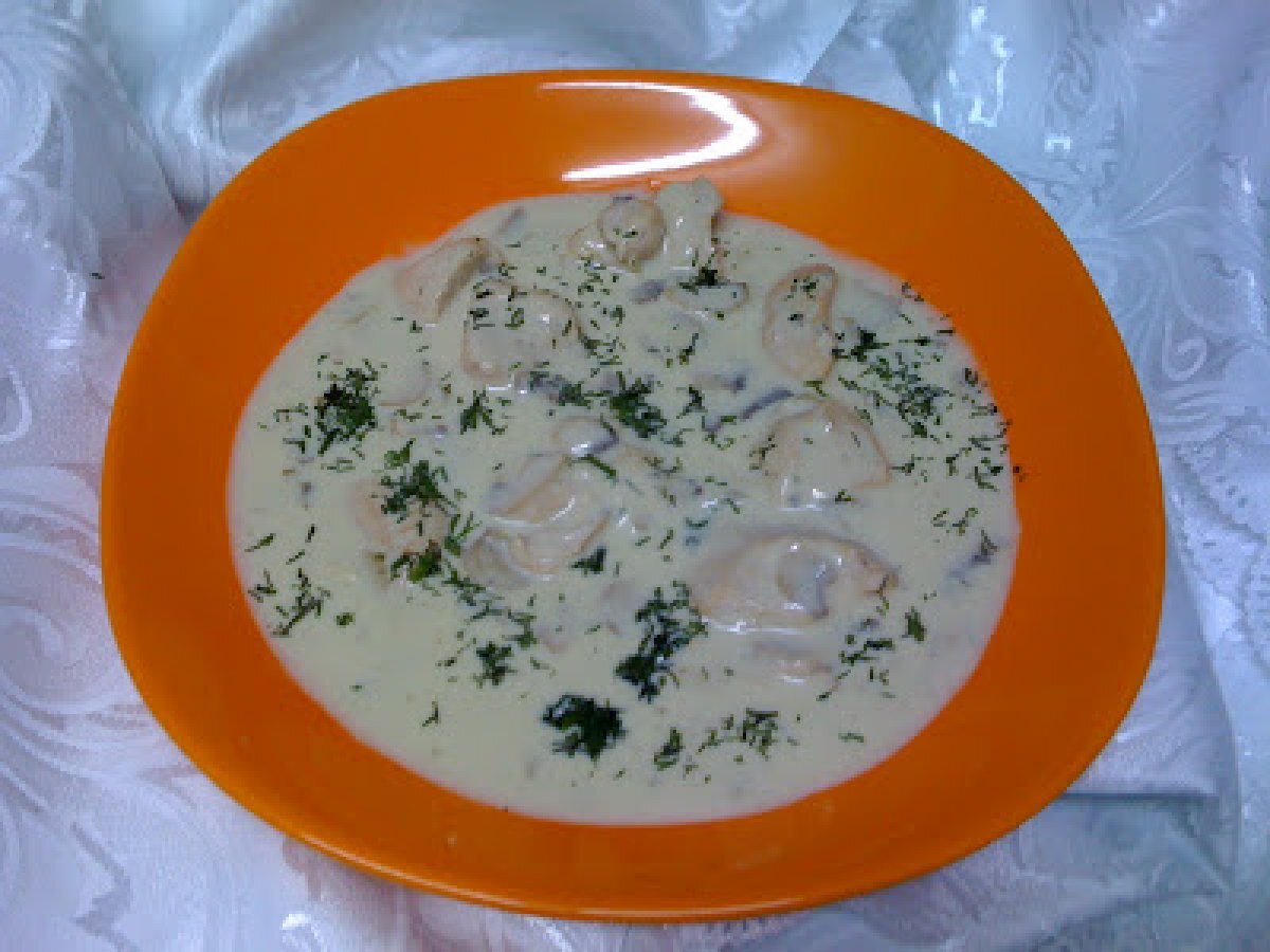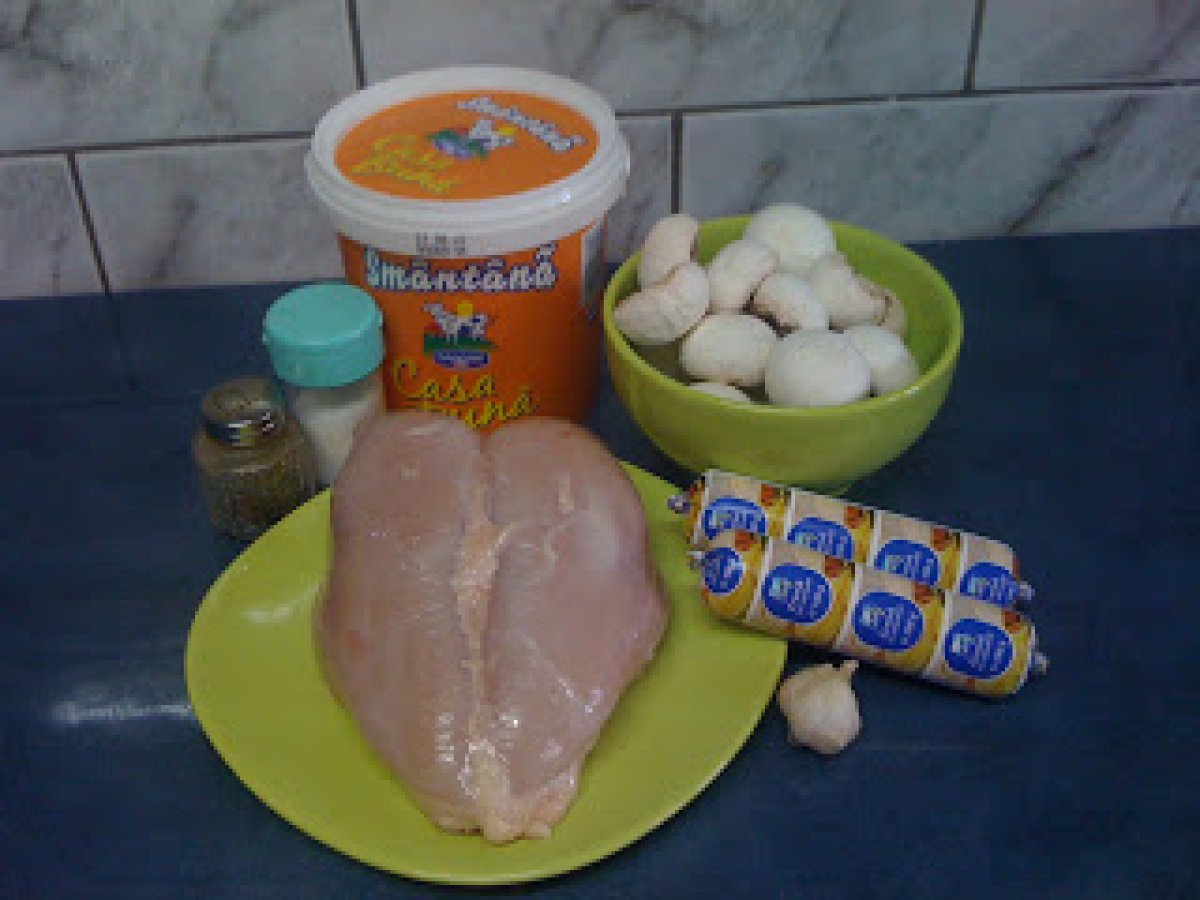 Piept de pui cu smantana si ciuperci PrecedentulUrmătorul Felul principalFoarte ușor40 min499 Kcal Trimite unui prieten Printează pagina Adresează o întrebare autorului Postează o poză cu rețeta gătită de tine Ingrediente 4 1 piept de pui mai mare 500 ml smantana 200 g crema de cascaval (2 batoane) 400 g ciuperci 1 lingura de faina usturoi piper sare marar