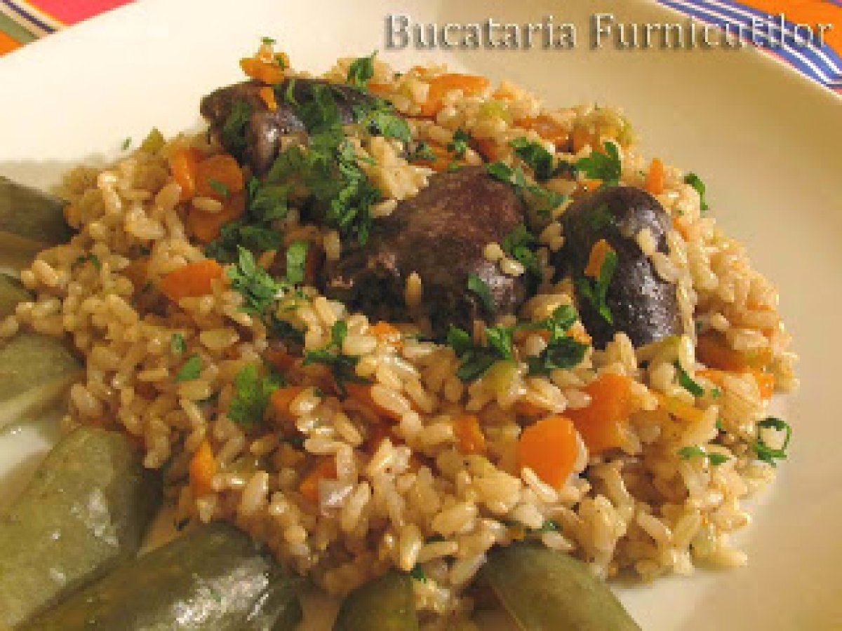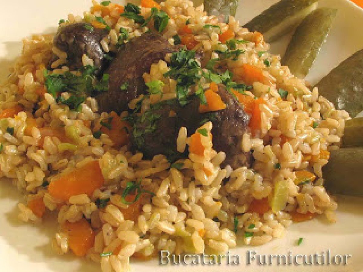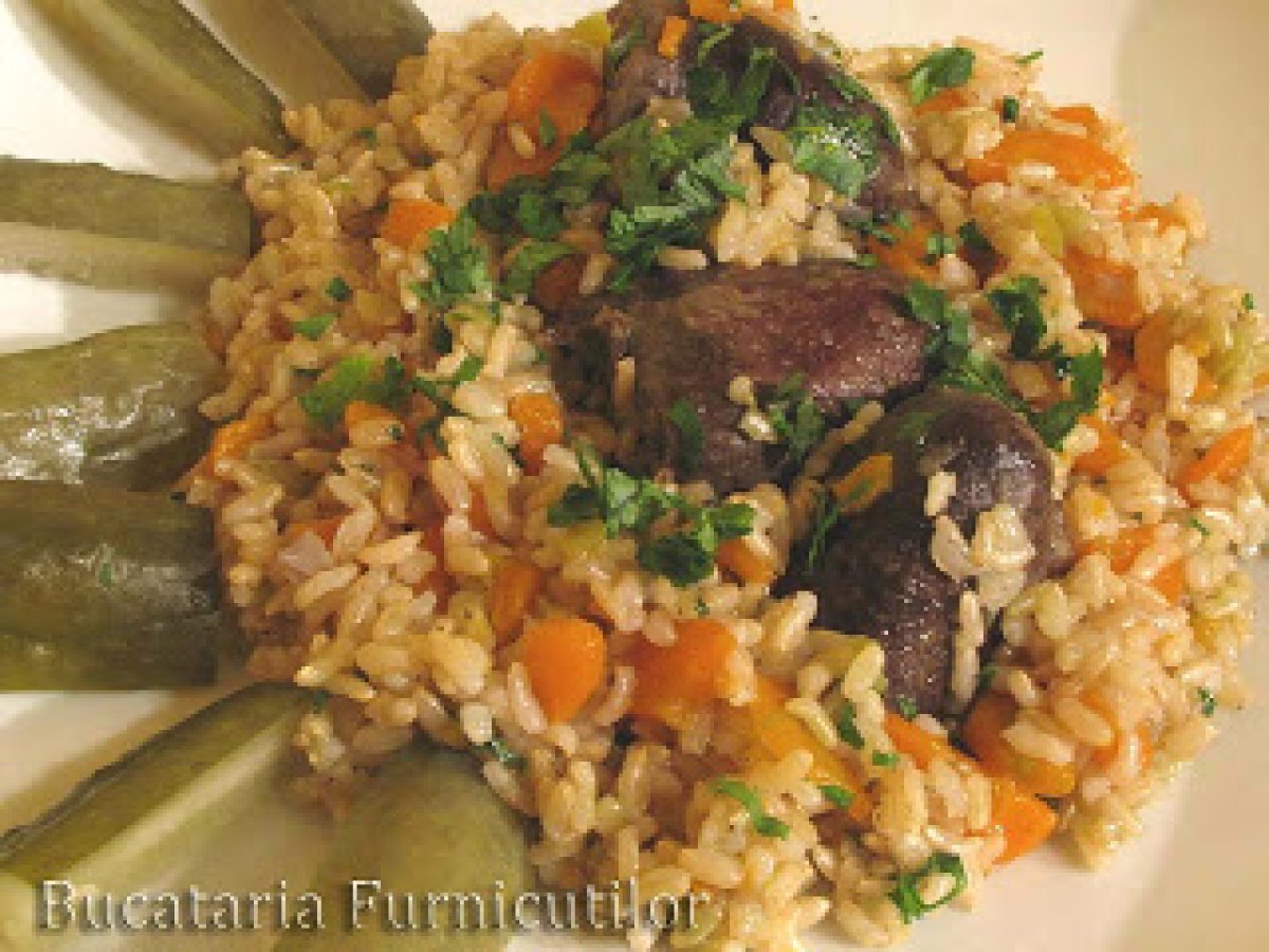 Pilaf cu inimi de curcan PrecedentulUrmătorul Felul principalFoarte ușor35 min Trimite unui prieten Printează pagina Adresează o întrebare autorului Postează o poză cu rețeta gătită de tine Ingrediente 6 1 casoleta inimi de curcan 250 g orez 2 - 3 morcovi 1 ardei 1 ceapa 3 linguri de ulei sare, piper patrunjel