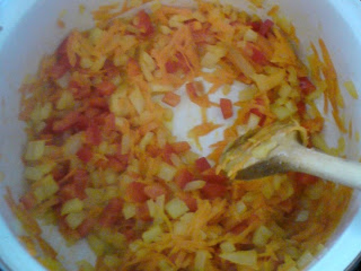 Pilaf de orez cu pui si ciuperci PrecedentulUrmătorul Felul principalFoarte ușor35 min Trimite unui prieten Printează pagina Adresează o întrebare autorului Postează o poză cu rețeta gătită de tine Ingrediente 3 500 g piept de pui dezosat; 400 g ciuperci din conserva; 150 g orez; 2 morcovi; 1 ceapa; 1 ardei gras rosu; 1 ardei capia verde; 2 lingurite cu Maggi, Secretul Gustului; 1/2 lingurita cu condiment special pentru pilaf de la Fuchs; 1/2 legatura patrunjel; 2 lingurite cu sare.