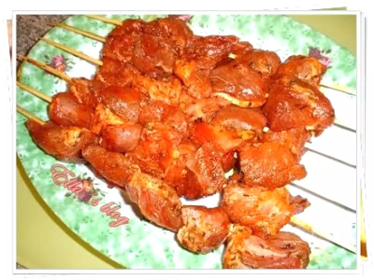 Pinchos morunos (frigarui de porc marinate) PrecedentulUrmătorul Felul principalFoarte ușor3 h 20 m Trimite unui prieten Printează pagina Adresează o întrebare autorului Postează o poză cu rețeta gătită de tine Ingrediente 4 500 g carne de porc 2 lingurite de boia dulce 1 lingurita de boia picanta 1 lingurita de cimbru 1 lingurita de patrunjel 5 linguri de ulei de masline sare, piper