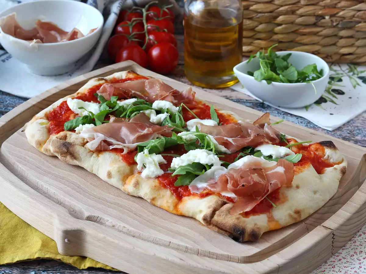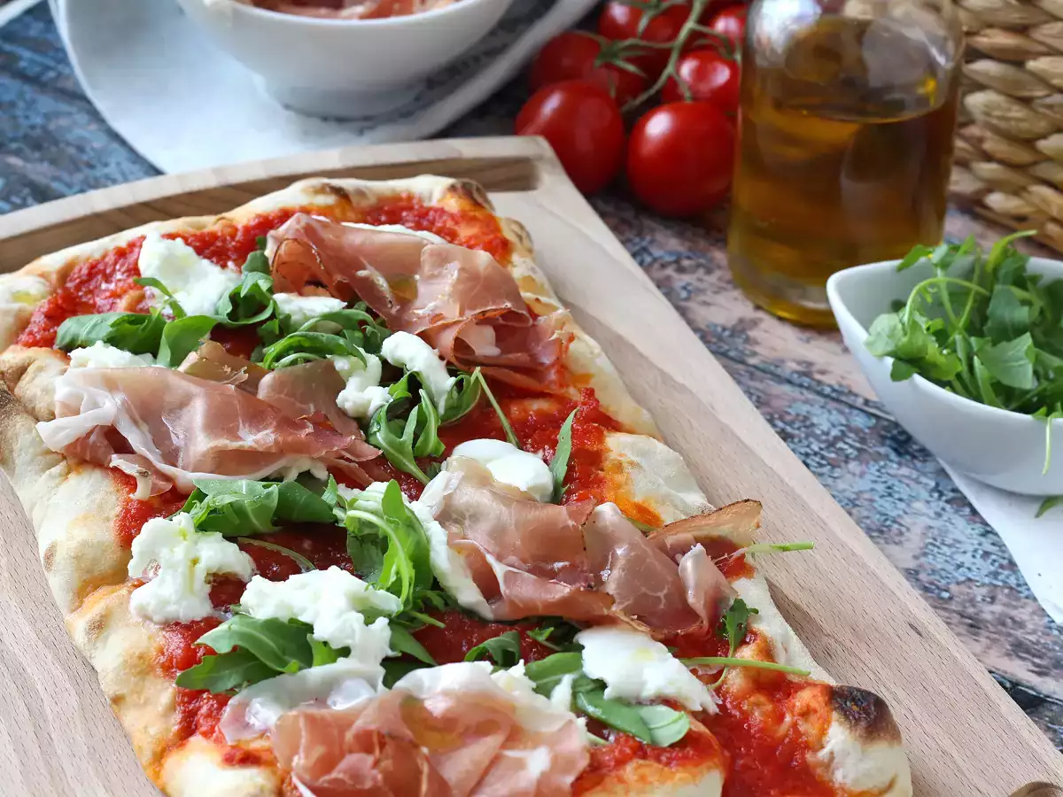 Doriți o pizza express ? Încearcă pinsa! Cu aluatul său precopt, moale la interior și crocant la exterior, este perfectă pentru o masă rapidă și foarte gustoasă. Aici, este însoțită de un sos de roșii făcut în casă, mozzarella topită, speck și puțină rucola pentru o notă de prospețime. Un strop de ulei de măsline pentru finisare, câteva minute în cuptor... și este gata :)
