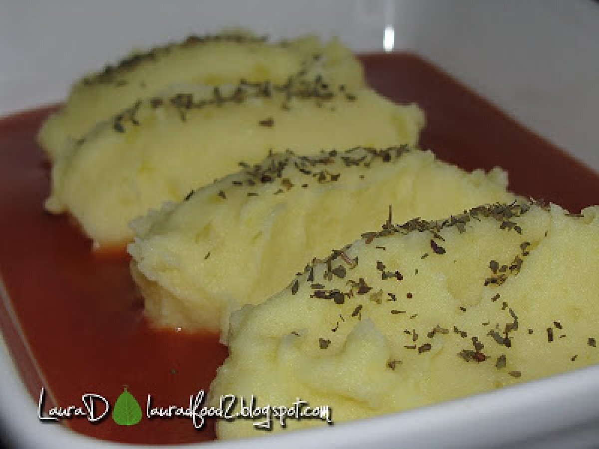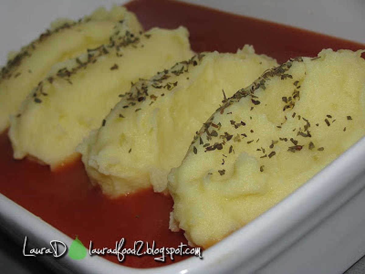 Piure de cartofi aromati in sos rosu PrecedentulUrmătorul Felul principalFoarte ușor35 min Trimite unui prieten Printează pagina Adresează o întrebare autorului Postează o poză cu rețeta gătită de tine Ingrediente 4 300 g cartofi curatati si taiati cubulete 3 foi de dafin 25 g unt 10 ml lapte cald sare Pentru sos: 20 ml lapte 1 ceapa rosie mica, curatata si toccata 1 catel de usturoi, curatat si tocat 1 lingurita zahar brun 200 ml bulion de rosii 10 g amidon alimentar