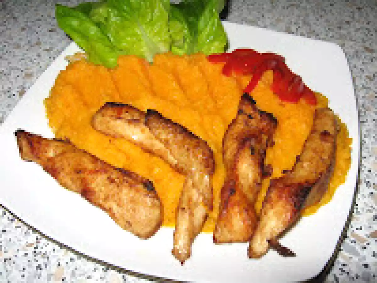 Piure de morcovi cu piept de pui Felul principalFoarte ușor50 min Trimite unui prieten Printează pagina Adresează o întrebare autorului Postează o poză cu rețeta gătită de tine Ingrediente 4 piept de pui 3-4 morcovi o bucata de telina 1 cartof mic