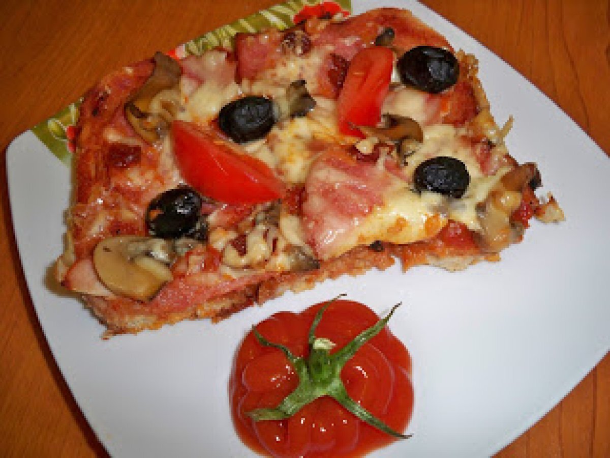 Pizza cu blat din paine Felul principalFoarte ușor25 min Trimite unui prieten Printează pagina Adresează o întrebare autorului Postează o poză cu rețeta gătită de tine Ingrediente 8 felii de paine ceva mai groase , unt , lapte , sos de rosii , salam , piept de pui afumat , carnati picanti , ciuperci din conserva , cascaval , masline , sare , piper , busuioc .