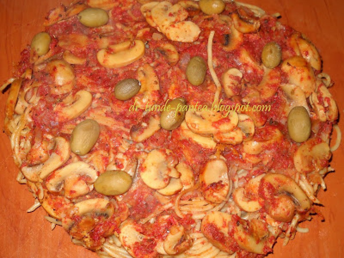 Pizza cu blat din spaghete PrecedentulUrmătorul Felul principalFoarte ușor50 min Trimite unui prieten Printează pagina Adresează o întrebare autorului Postează o poză cu rețeta gătită de tine Este o reteta usoara si foarte satioasa pt zilele de carbohidrati . Ingrediente 2 250 g de spaghete integrale 200 ml suc de rosii o cutie de ciuperci] o ceapa 2 catei de usturoi cateva masline ulei de masline condiment pt pizza