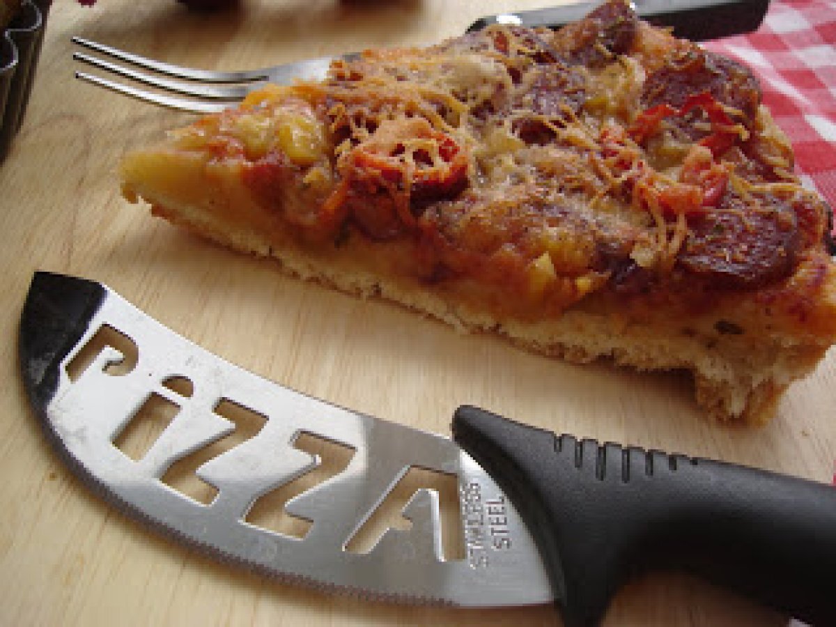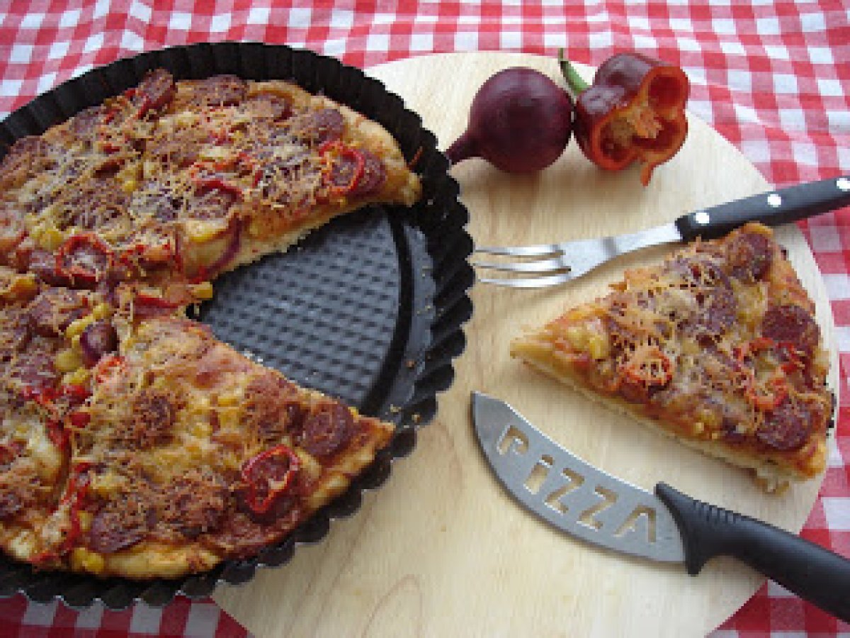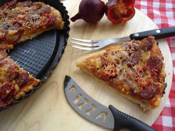 Pizza cu carnati PrecedentulUrmătorul Felul principalFoarte ușor1 h 10 m Trimite unui prieten Printează pagina Adresează o întrebare autorului Postează o poză cu rețeta gătită de tine Ingrediente 6 3 carnati afumati, 1 conserva de porumb, 1 ardei capia rosu, 1 ceapa rosie, bulion, oregano, cascaval. Pentru aluat: 400 g faina, 25 g drojdie, 150 ml lapte, 100 ml ulei de masline, 1 lingurita de sare, 1/2 lingurita zahar.