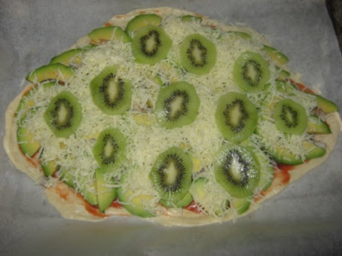 Pizza cu peste, avocado si kiwi votează acum PrecedentulUrmătorul Felul principalFoarte ușor12 min Trimite unui prieten Printează pagina Adresează o întrebare autorului Postează o poză cu rețeta gătită de tine Ingrediente 8 aluat dospit (500 faina, un praf de sare, un praf de zahar, o lingurita drojdie, 3 linguri ulei, un ou si apa cat cuprinde, framantate si dospite pentru cel putin 2 ore) 1 avocado cateva bucati de peste marinat, sau afumat daca va place mai mult 3 linguri sos e rosii, sau ketckhup cu ierburi de la Hellmans 1 kiwi 100 g mozzarela sau cascaval