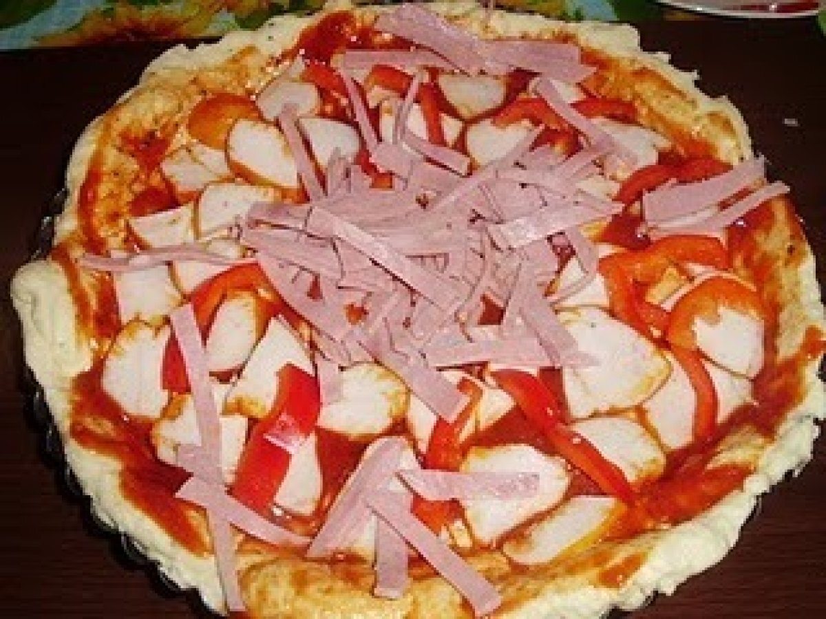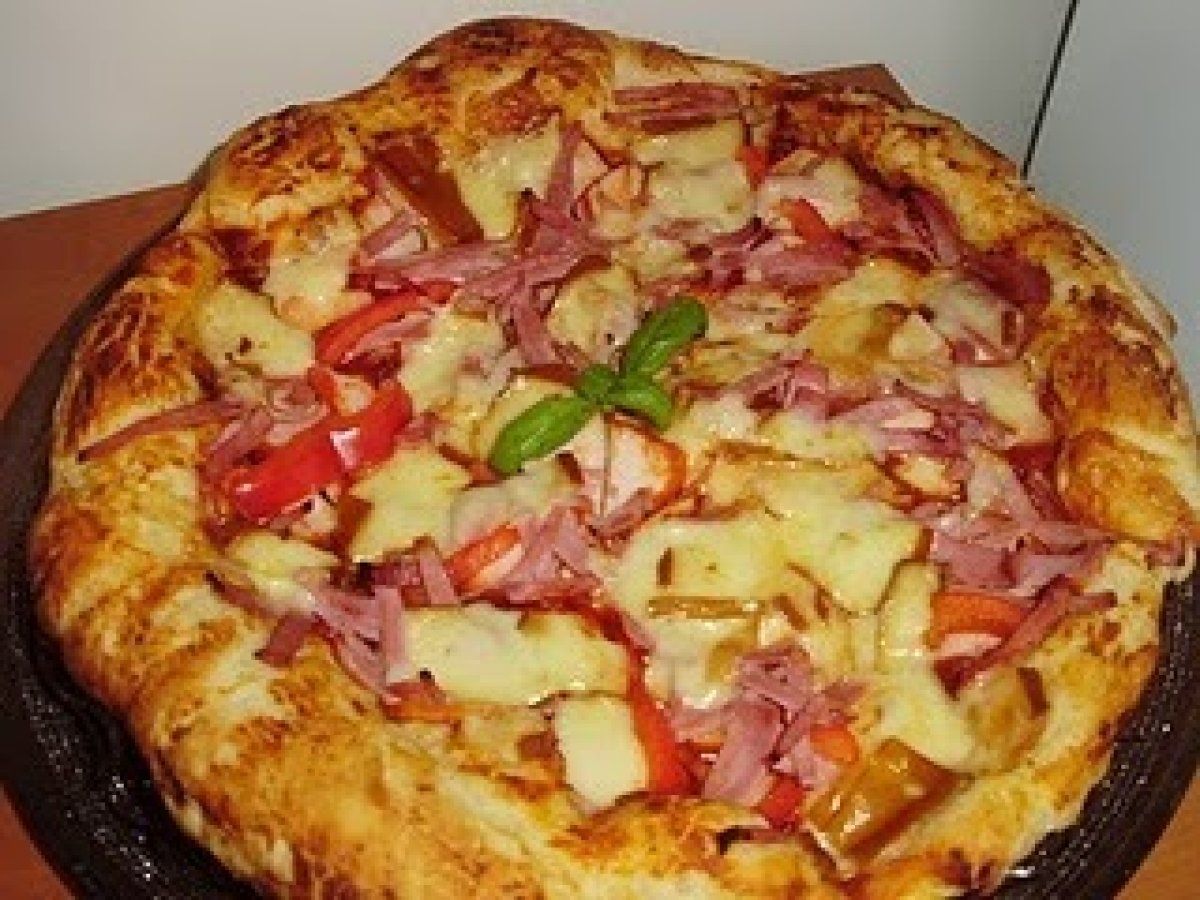 Pizza de pui PrecedentulUrmătorul Felul principalDificil40 min Trimite unui prieten Printează pagina Adresează o întrebare autorului Postează o poză cu rețeta gătită de tine Ingrediente 5 1. Pentru aluat: 350 gr faina, 2o gr drojdie proaspata, 30 ml ulei masline, 75 ml apa calduta ( se poate pune si lapte, pentru un gust mai bun), 1 lingurita zahar- pentru maia 2. Pentru sosul de rosii: 2 linguri sos de rosii, 1 lingura ulei masline, 1 lingura apa rece, oregno uscat, piper, sare. 3. Pentru umplutura: 100 gr sunca de pui, 150 gr pastrama piept de pui, 100 gr cascaval ras.