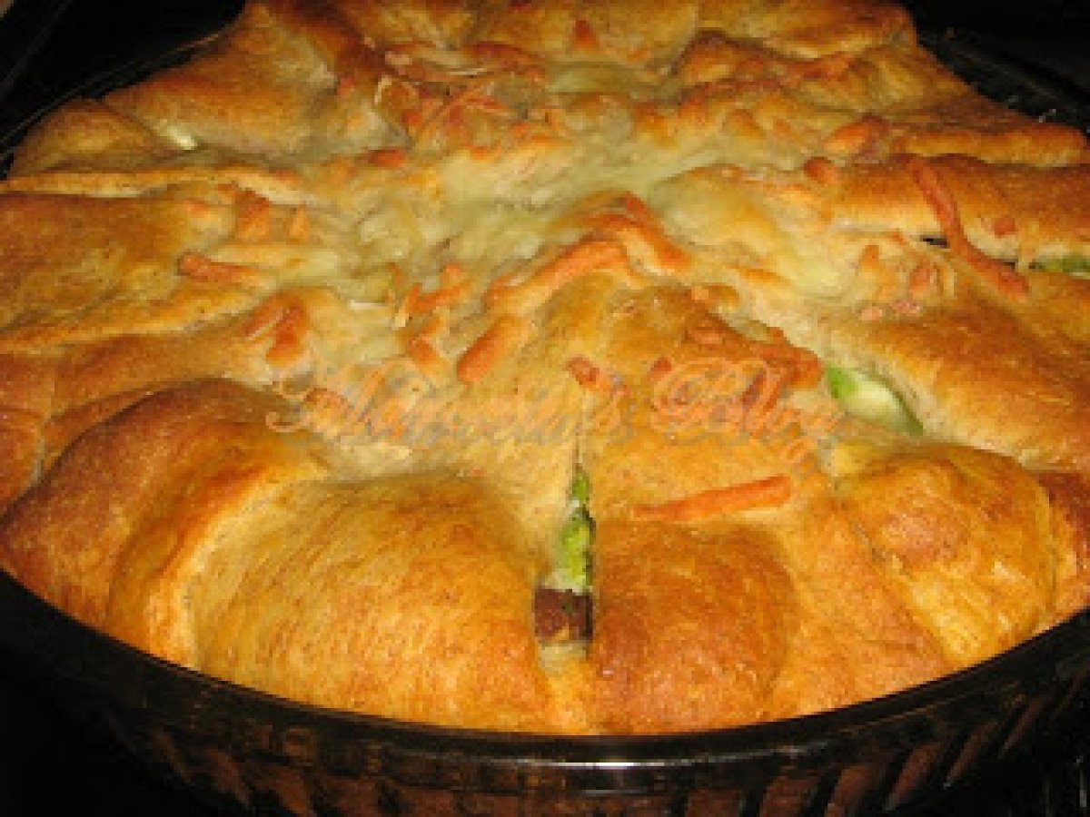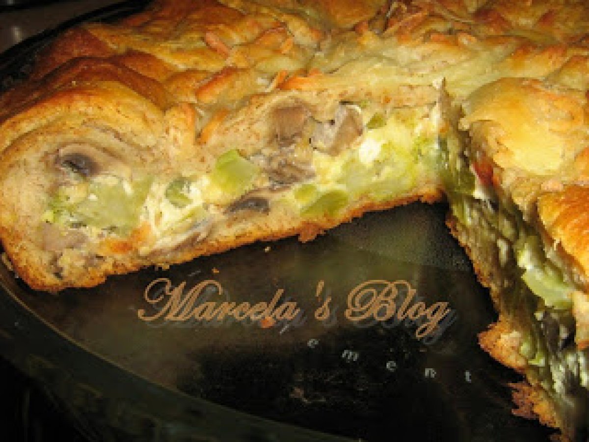Placinta aperitiv cu legume PrecedentulUrmătorul Felul principalFoarte ușor55 min Trimite unui prieten Printează pagina Adresează o întrebare autorului Postează o poză cu rețeta gătită de tine Ingrediente 7 1 can Pillsbury crescent dinner rolls/aluat de paine rosii cherry- taiate in jumatate broccoli- buchetele ciuperci- taiate in sferturi ceapa verde- taiata marunt 100-150ml smantana lichida 1-2lg unt 2 oua parmezan ras sare, piper