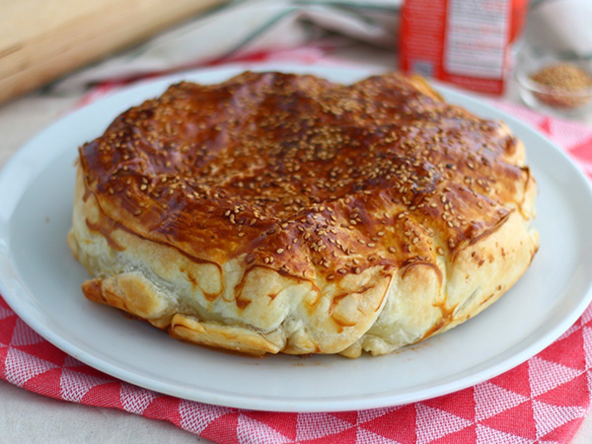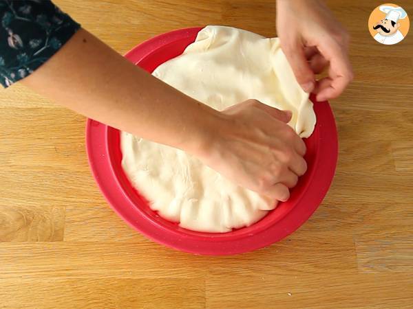 Indoiti marginile aluatului peste umplutura si acoperiti cu a doua foaie de aluat. Puneti marginile sub primul aluat incat sa dati forma unei placinte.