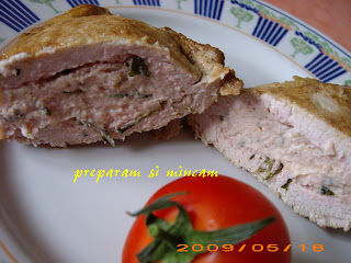 o jumatate pahar lapteo felie de piine 2 felii de prosciutto cotto o lingura busuioc macinat2 linguri de parmezansare piper macinatbrinza philadelphia 1-2 linguri ulei de maslineunt cit o nucajumatate pahar de vin marsala (vin rosu sec)Pregatim intii umplutura pentru carne. Punem piinea bucatele la inmuiat cu laptele, dupa care scurgem bine piinea de lapte si bagam in robotul de bucatarie: piinea, busuiocul, prosciutto, parmezanul, un picut de piper macinat si un pic de sare.
