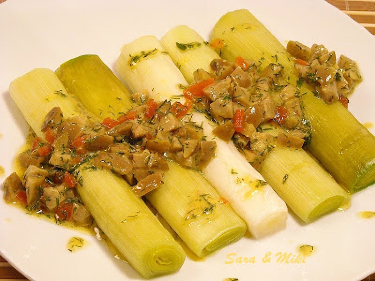 Praz cu sos de vin si masline / garnitura PrecedentulUrmătorul Felul principalFoarte ușor35 min Trimite unui prieten Printează pagina Adresează o întrebare autorului Postează o poză cu rețeta gătită de tine Ingrediente 4 2-3 fire de praz 100 g. masline verzi ceapa rosie medie ulei vin, zeama de lamaie piper sare,