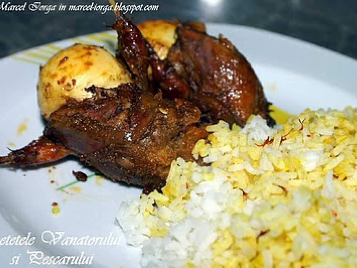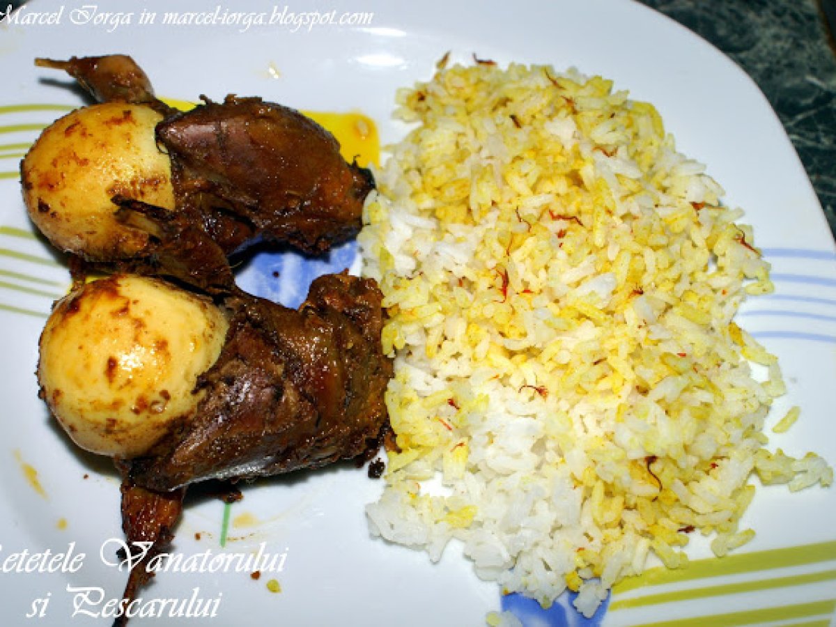 Prepelite in stil indian (o parte din "masa regilor") PrecedentulUrmătorul Felul principalFoarte ușor1 h 15 m Trimite unui prieten Printează pagina Adresează o întrebare autorului Postează o poză cu rețeta gătită de tine Ingrediente 4 16 oua fierte tare 2 linguri boia dulce 1 lingura boia iute 1 lingurita de curcuma 12-15 catei de usturoi dati prin razatoare 6-8 cm de ghimbir proaspat ras 200 ml de iaurt de capra si bivolita 1 lingurita de chilli macinat sare dupa gust