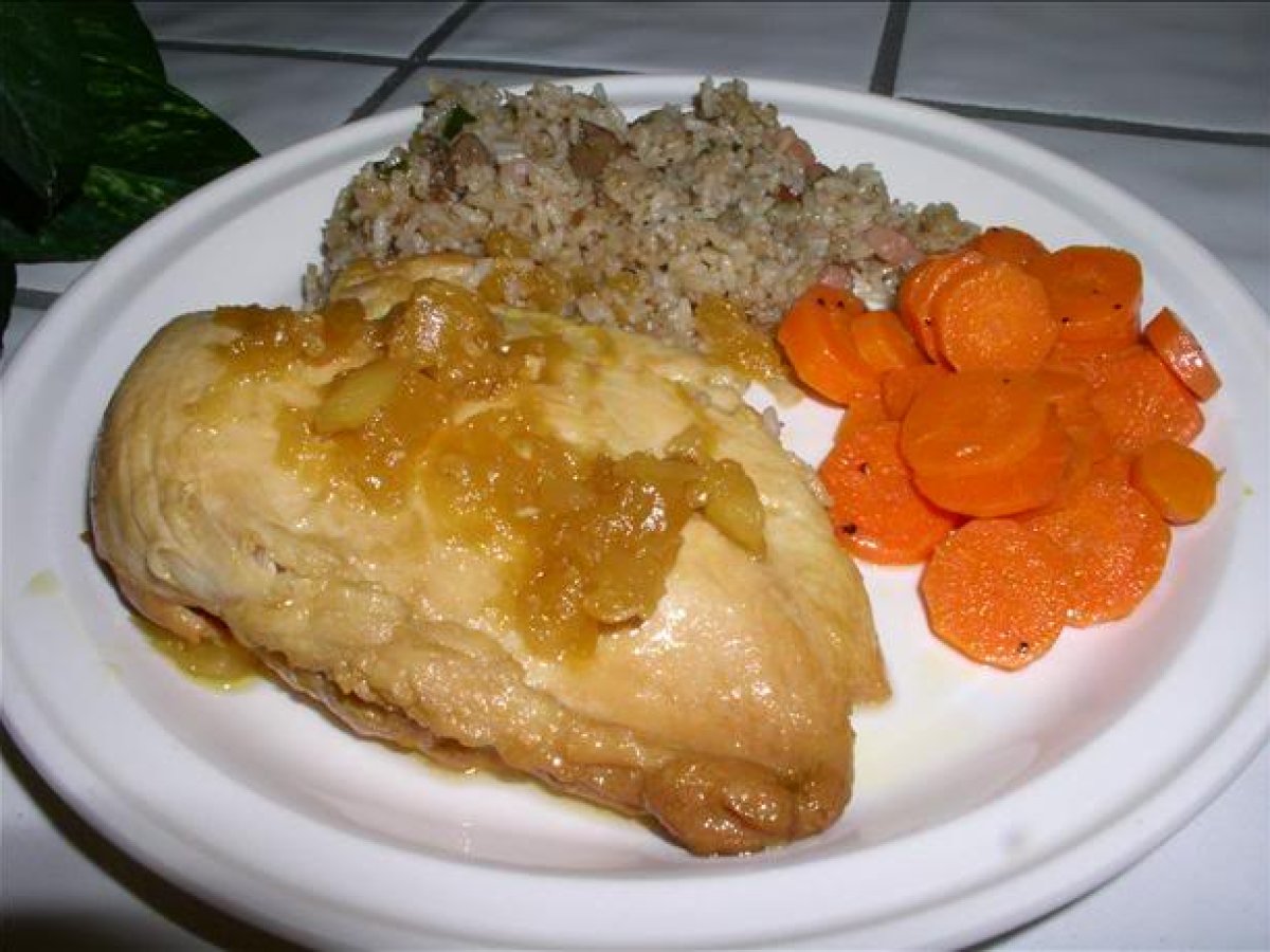 Pui cu ananas si miere votează acum Felul principalFoarte ușor4 h 40 m Trimite unui prieten Printează pagina Adresează o întrebare autorului Postează o poză cu rețeta gătită de tine Ingrediente 8 1 kg piept de pui fara piele 2 linguri de ulei 1 conserva de ananas neindulcita, scursa 1 cana zahar brun 1 / 2 ceasca miere 1 / 3 ceasca suc de lamaie 1 / 4 pahar unt 2 linguri de mustar 2 linguri sos de soia putina sare