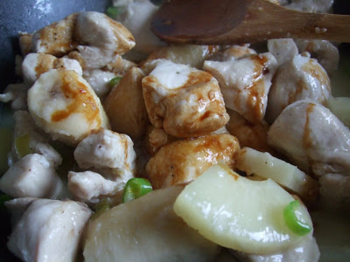 Pui cu banane si ananas PrecedentulUrmătorul Felul principalFoarte ușor1 h 10 m Trimite unui prieten Printează pagina Adresează o întrebare autorului Postează o poză cu rețeta gătită de tine Ingrediente 2 bananele ananasul peste carne punem sare piper orez