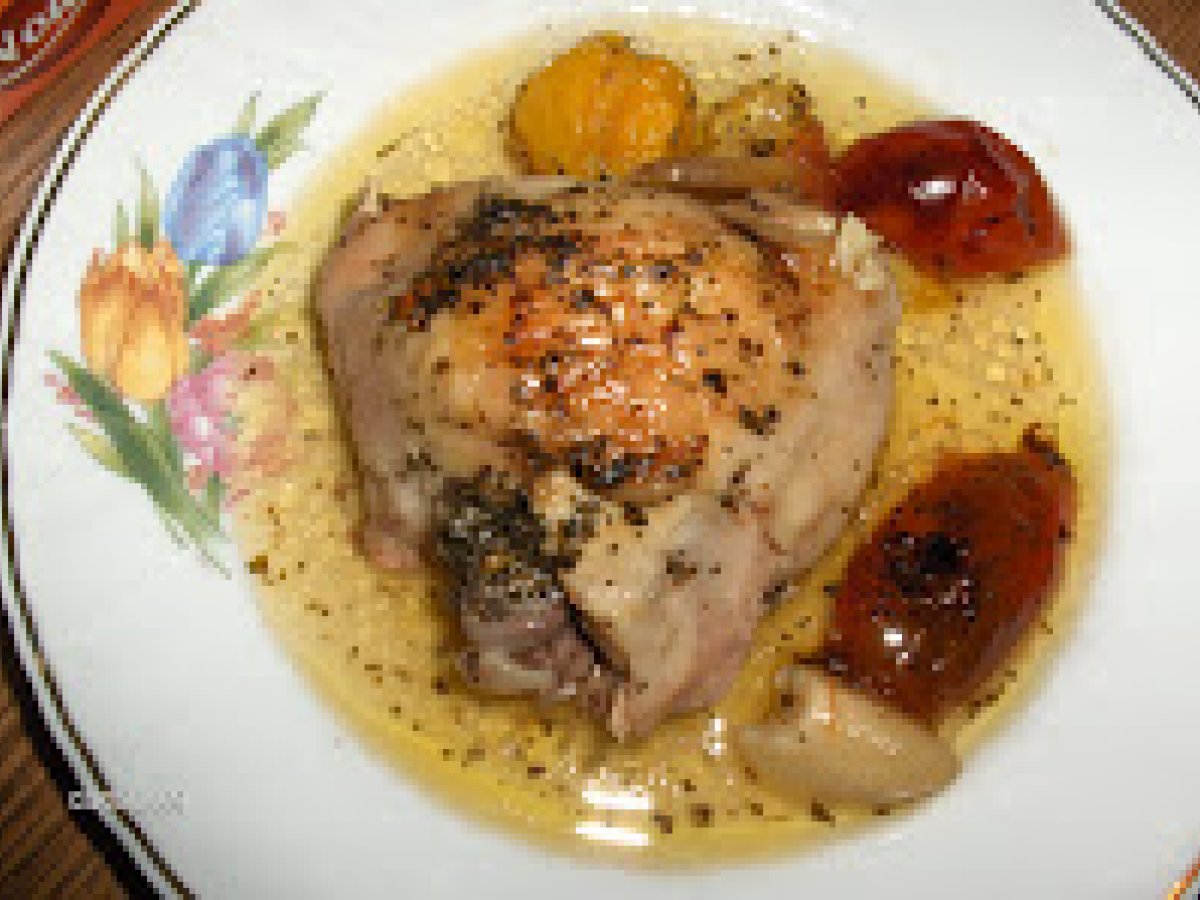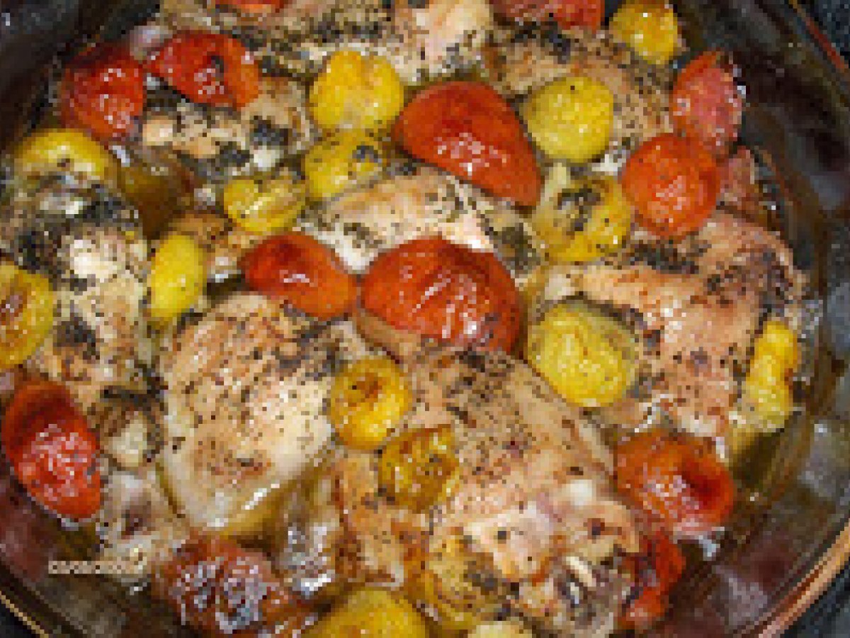 Pui cu busuioc si rosii chery votează acum PrecedentulUrmătorul Felul principalFoarte ușor1 h 20 m Trimite unui prieten Printează pagina Adresează o întrebare autorului Postează o poză cu rețeta gătită de tine Ingrediente 2 pulpe pui sare piper busuioc proaspat sau uscat tarhon 2 maini mari de rosii chery rosii galbene taiate jumatati vreo 2-3 rosii taiate sferturi o capatana de usturoi ulei de masline