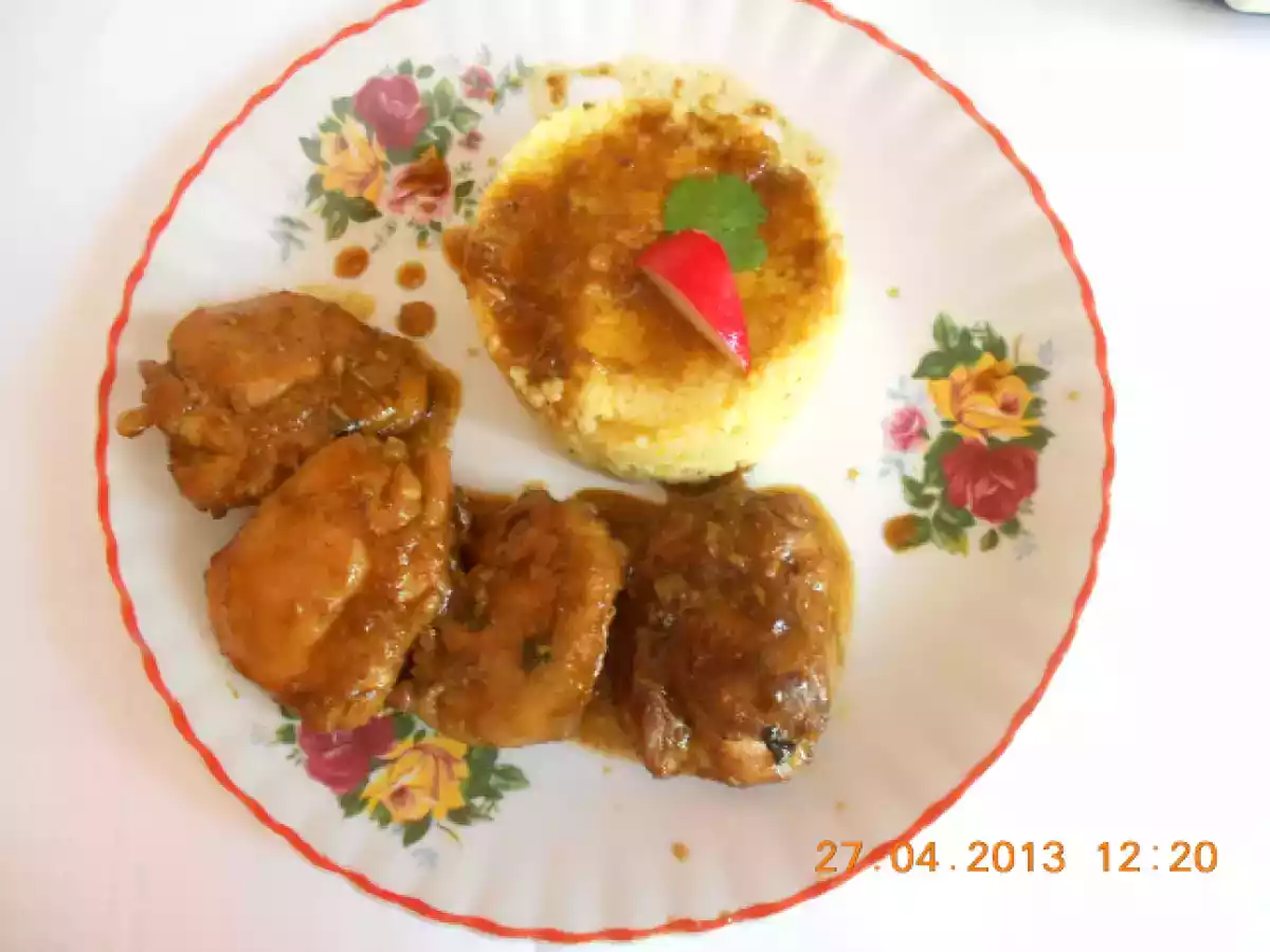 Pui cu chutney de smochine si ulei de trufe cu garnitura de cuscus cu sofran si menta