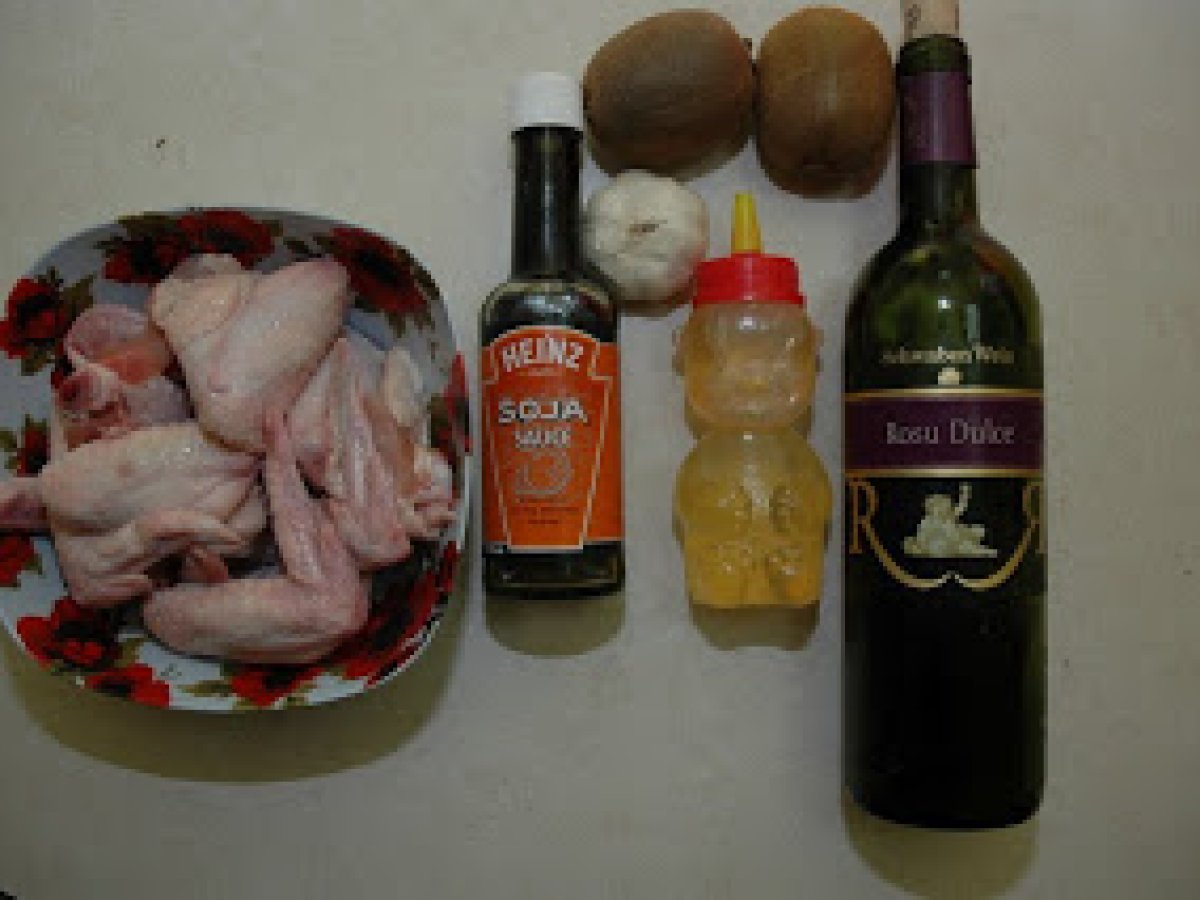 Pui cu kiwi la cuptor votează acum PrecedentulUrmătorul Felul principalFoarte ușor40 min Trimite unui prieten Printează pagina Adresează o întrebare autorului Postează o poză cu rețeta gătită de tine Ingrediente 4 niste pui aripi, kiwi usturoi miere sos de soia si vin rosu.