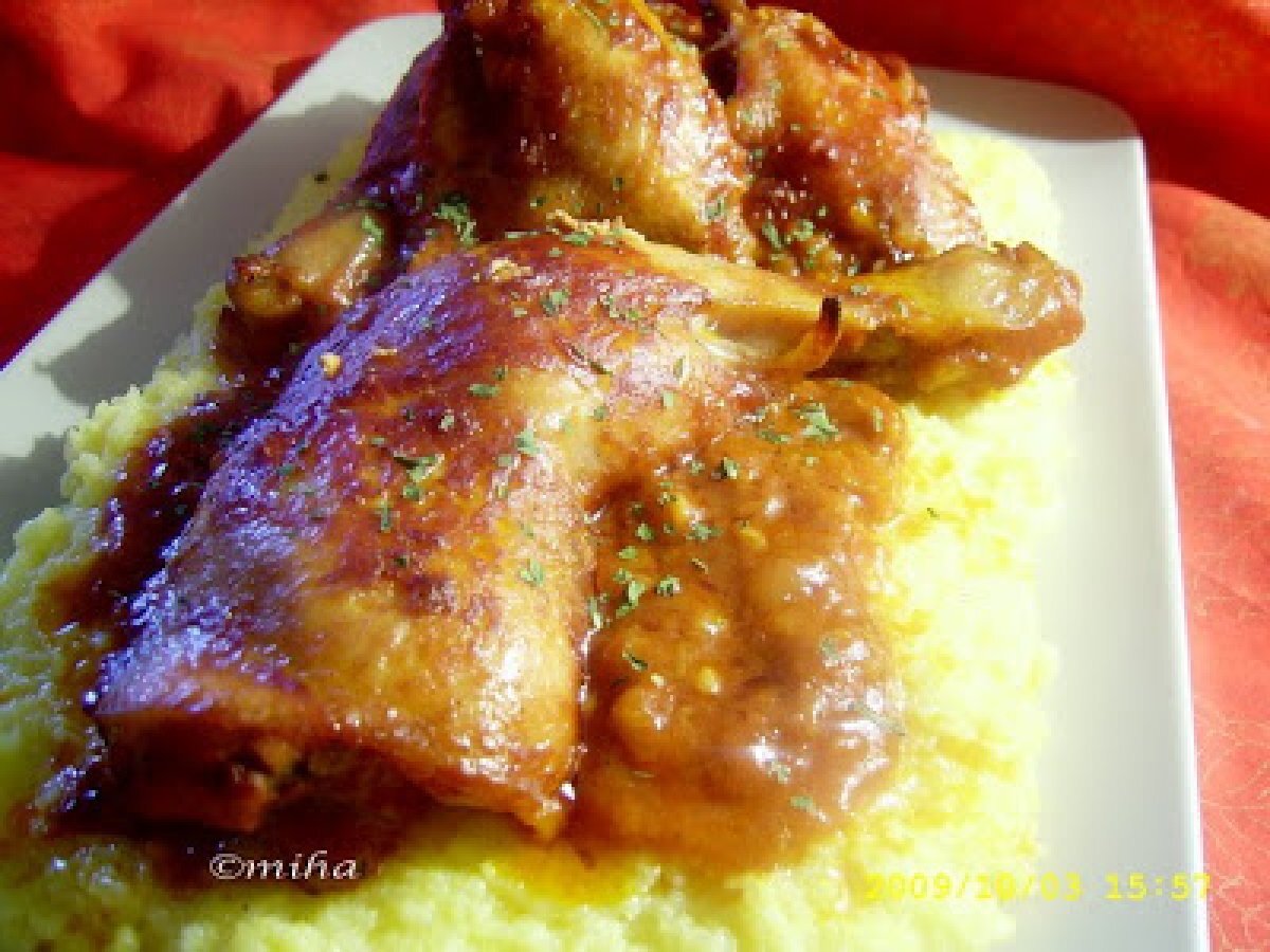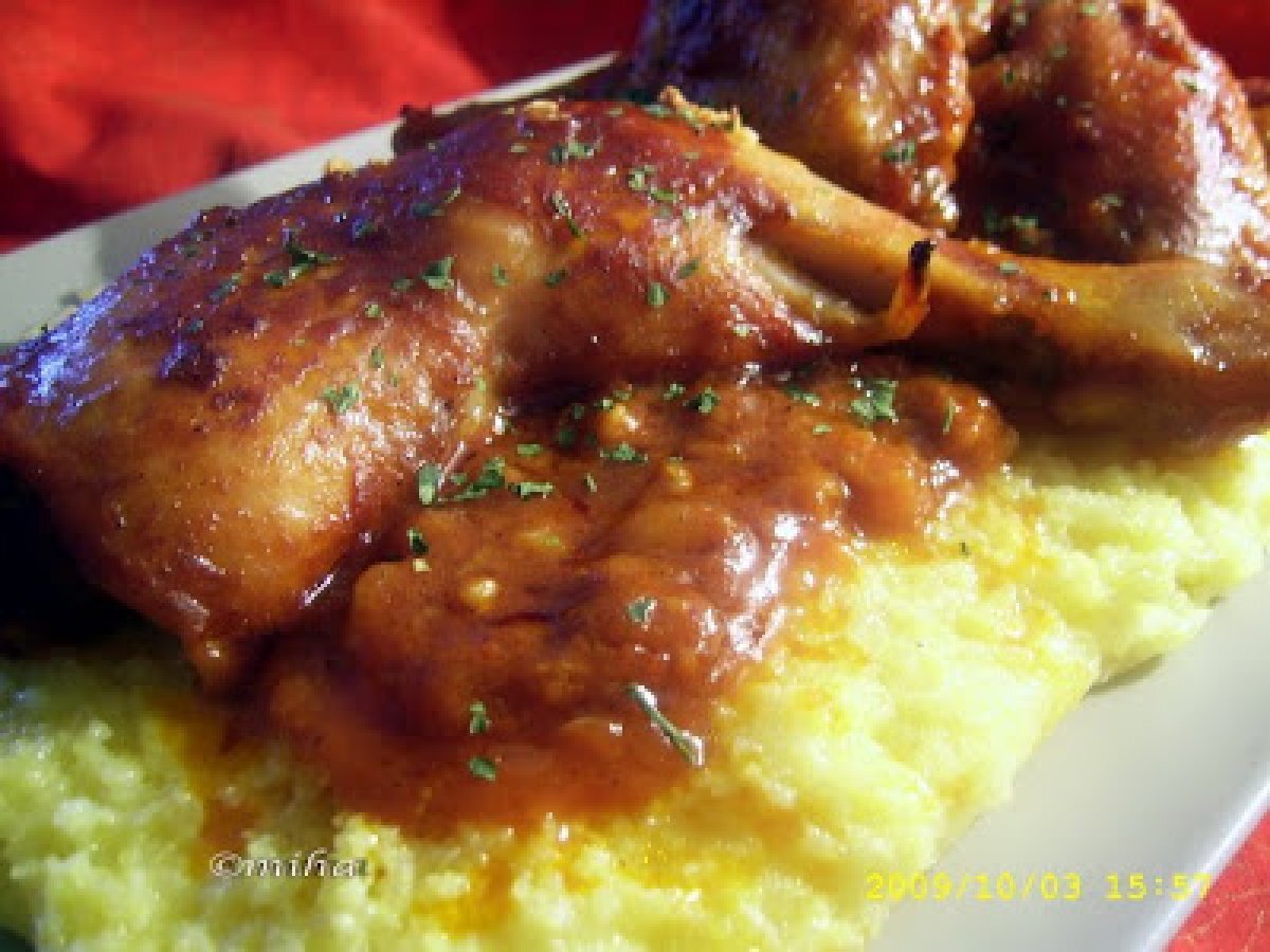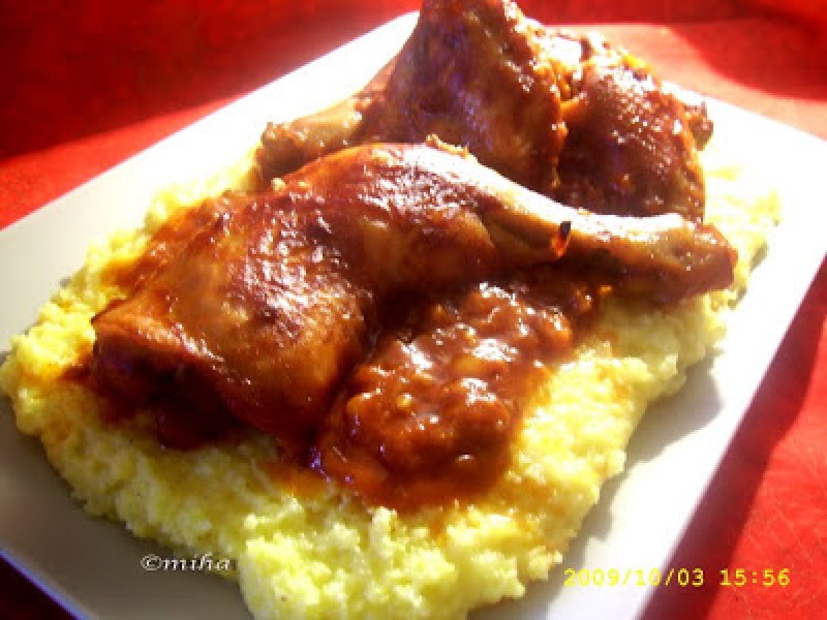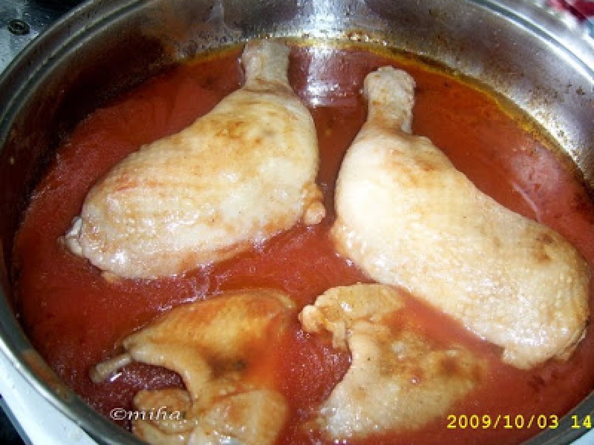 Pui cu sos de rosii si usturoi PrecedentulUrmătorul Felul principalFoarte ușor50 min288 Kcal Trimite unui prieten Printează pagina Adresează o întrebare autorului Postează o poză cu rețeta gătită de tine Ingrediente 4 500 g carne de pui 1 pahar de vin alb 2 pahare de suc de rosii 5-6 catei de usturoi oregano si boia de ardei sare si piper 3 linguri ulei de masline Cost estimat: 7.74Euros€ (1.93€/porție)