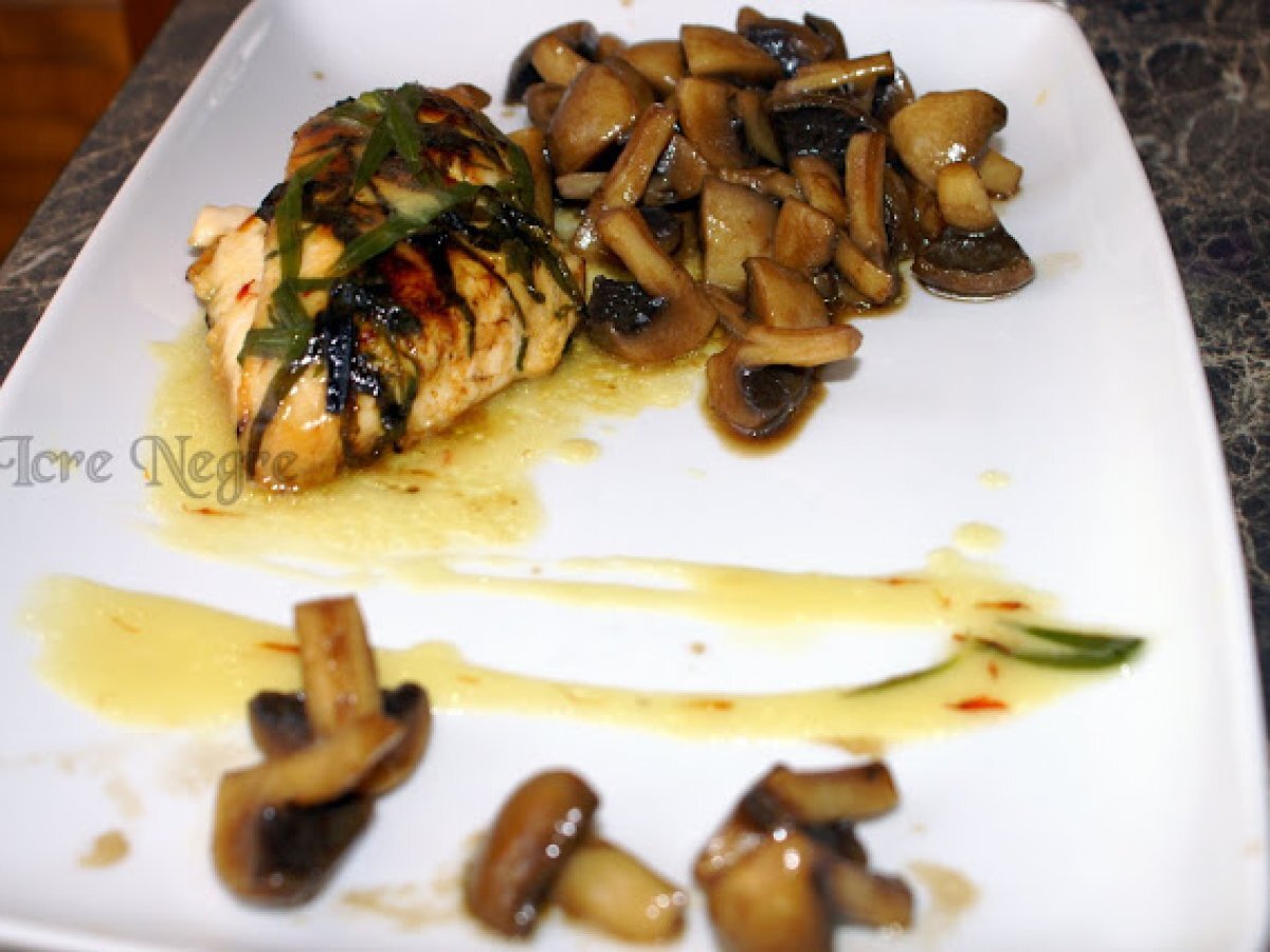 Pui cu sos de tarhon si ciuperci champignon PrecedentulUrmătorul Felul principalFoarte ușor45 min Trimite unui prieten Printează pagina Adresează o întrebare autorului Postează o poză cu rețeta gătită de tine Ingrediente 2 1 piept de pui, fara piele si dezosat 3 linguri de ulei de masline 1 legatura de tarhon proaspat 500 g ciuperci champignon 100 g unt 100 ml vin alb sec 2 lingurite de amidon alimentar stins in apa recesofransare
