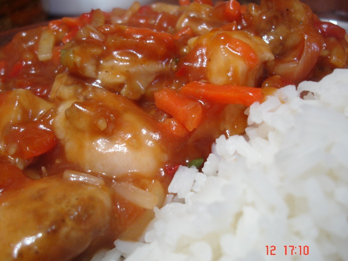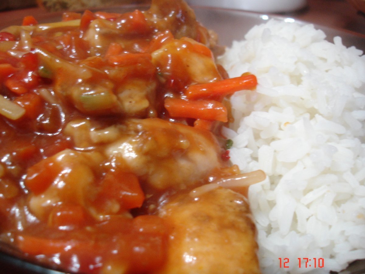 Pui cu sos dulce acrisor PrecedentulUrmătorul Felul principalFoarte ușor25 min Trimite unui prieten Printează pagina Adresează o întrebare autorului Postează o poză cu rețeta gătită de tine Ingrediente 1 1 piept de pui mic 2 lingurite de amidon 1 ceasca de legume mix chinezesc congelate 1 borcan sos dulce acrisor 1 ceasca orez Basmati. sare, piper