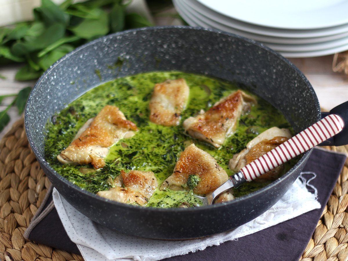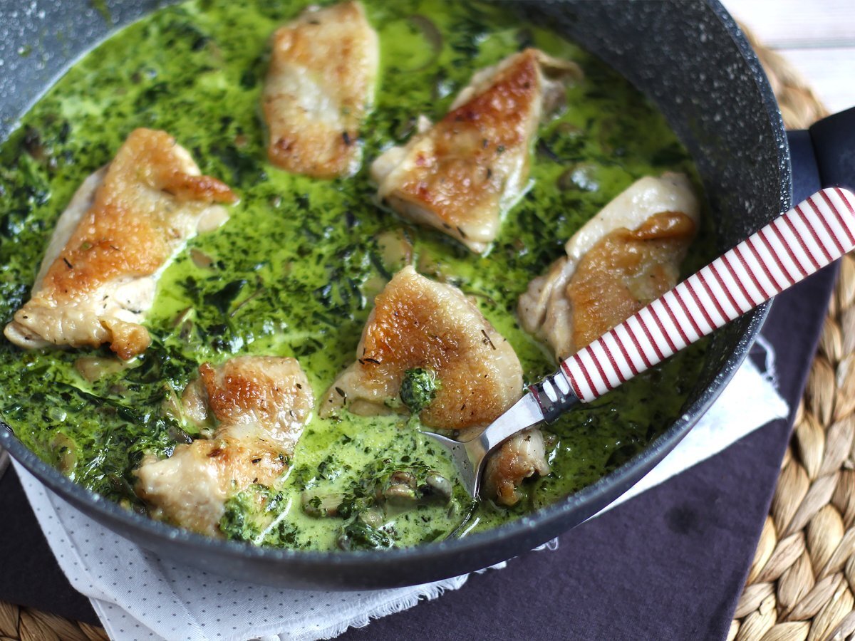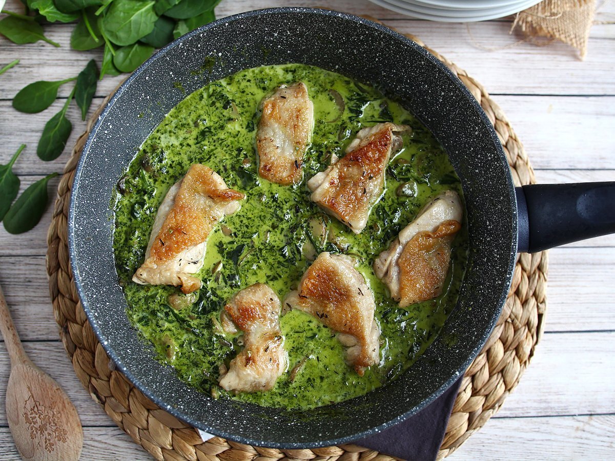 Nu aveți idei pentru cină? Faceți un sos cremos din spanac și ciuperci, apoi puneți pulpele de pui în el. Ca garnitură, tot ce trebuie să faceți este să gătiți orez, paste sau cartofi, iar masa va fi gata! Ușor, nu?!