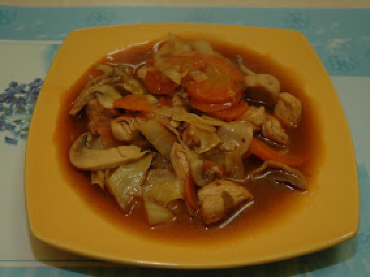 Pui cu varza si ciuperci votează acum PrecedentulUrmătorul Felul principalFoarte ușor50 min Trimite unui prieten Printează pagina Adresează o întrebare autorului Postează o poză cu rețeta gătită de tine Ingrediente 4 piept de pui usturoi un morcov un ardei iute pasta de tomate sos de soia o juma de varza si ciuperci.