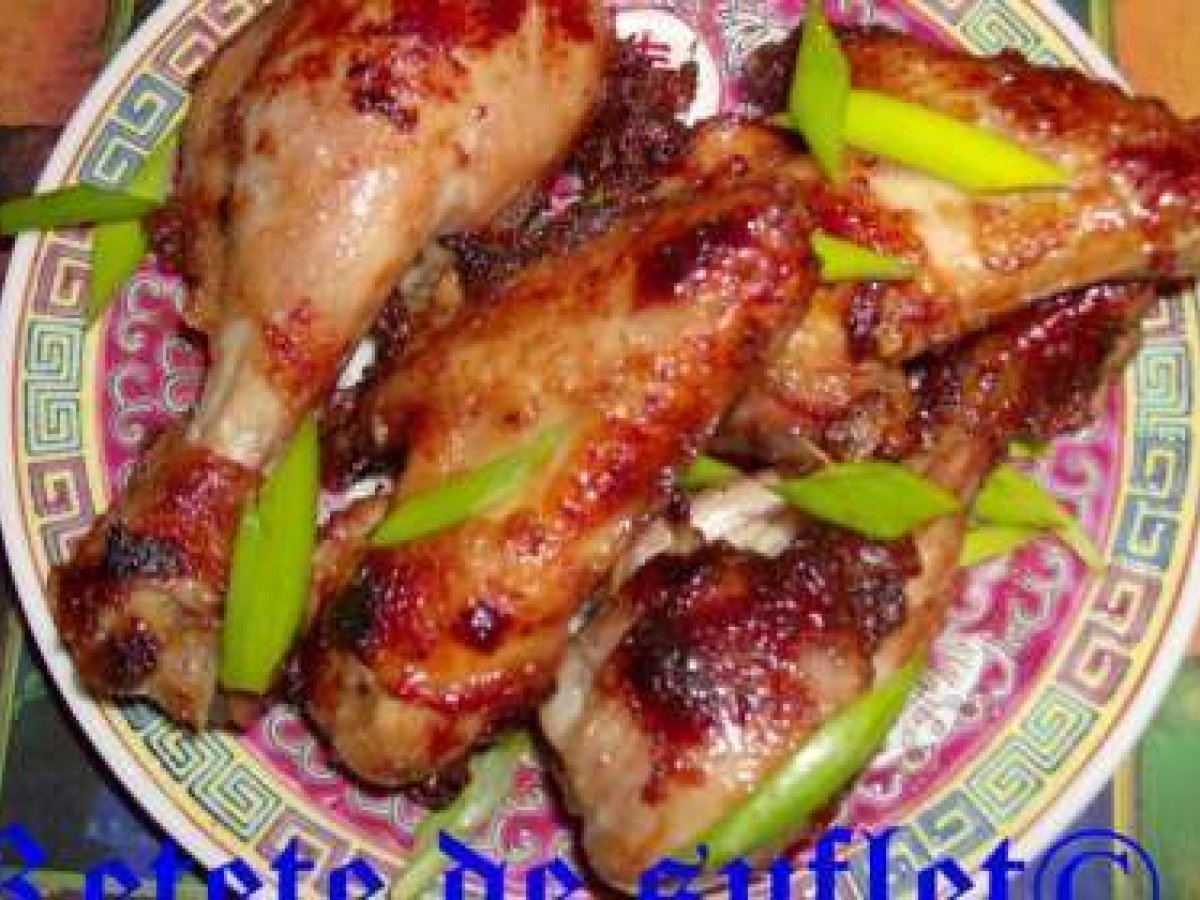 Pui glazurat cu miere Felul principalFoarte ușor1 h 20 m Trimite unui prieten Printează pagina Adresează o întrebare autorului Postează o poză cu rețeta gătită de tine Ingrediente 4 # 4 aripi de pui si 4 ciocanele (pulpe superioare) # 2 linguri miere # 3 linguri sos de soia # 2 catei de usturoi, rasi fin # 2 cm de ghimbir proaspat, ras # 1/4 lingurita chilli # 2 linguri amidon de porumb (sau o lingura faina) # ceapa verde, pentru ornat # ulei pentru prajit (deep fry)