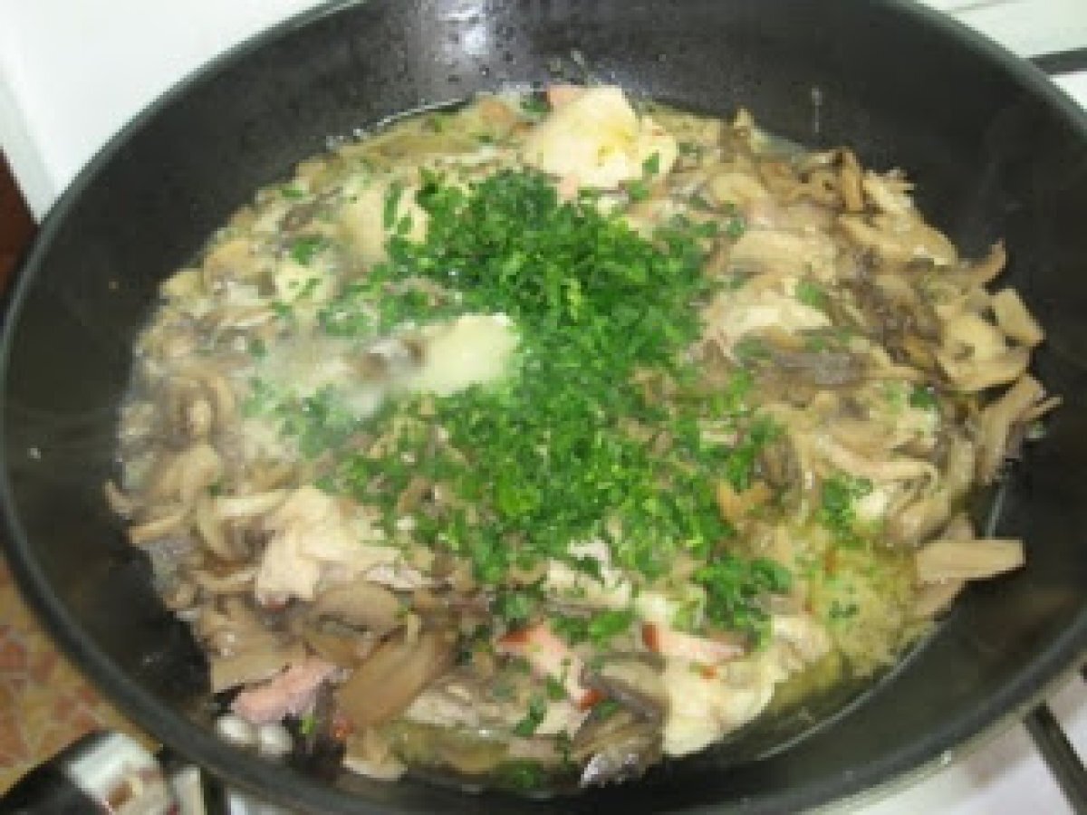 Pui lionez PrecedentulUrmătorul Felul principalFoarte ușor40 min304 Kcal Trimite unui prieten Printează pagina Adresează o întrebare autorului Postează o poză cu rețeta gătită de tine Ingrediente 4 4-5 pulpe pui 1 ceapa rasa 1 lingura unt 1 cutie ciuperci taiate 200 ml smantana 1/2 lamaie 2 galbenusuri sare piper