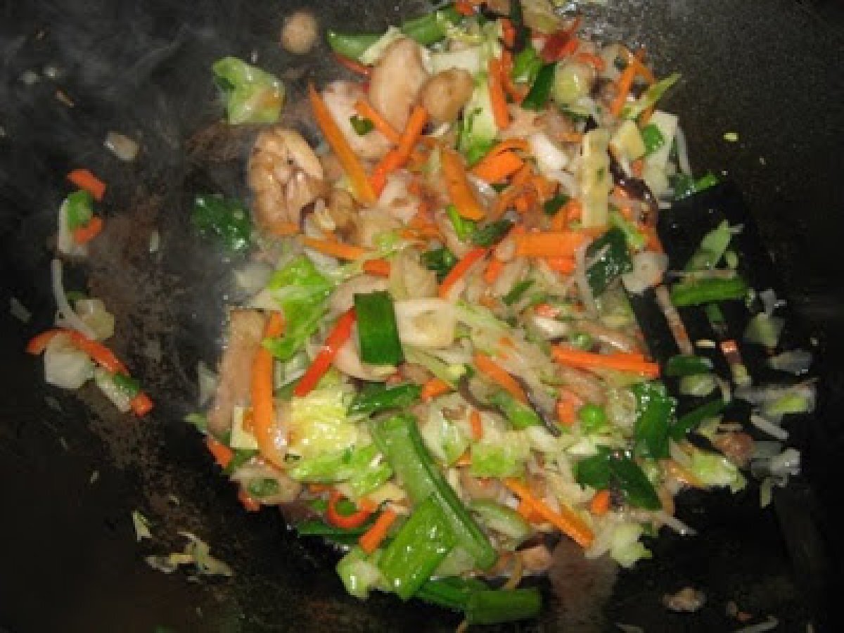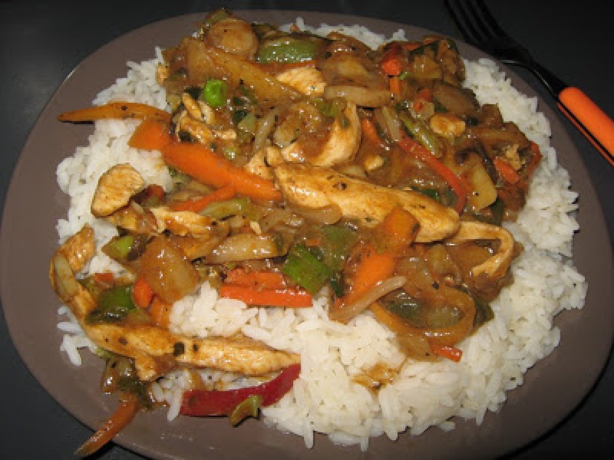 Pui picant cu legume si orez PrecedentulUrmătorul Felul principalFoarte ușor40 min Trimite unui prieten Printează pagina Adresează o întrebare autorului Postează o poză cu rețeta gătită de tine Ingrediente 2 o jumatate de piept de pui mare 2 ardei iuti rosii legume congelate - aprox 300 g ciuperci - aprox 200 g ceapa verde 2 linguri ulei un morcov taiat fideluta multe condimente picante, in special boia iute de ardei toate sosurile pe care le aveti in casa sare piper 2 pungi de 125 g orez