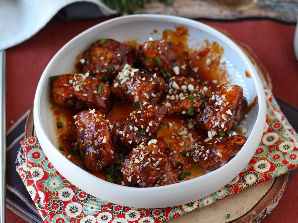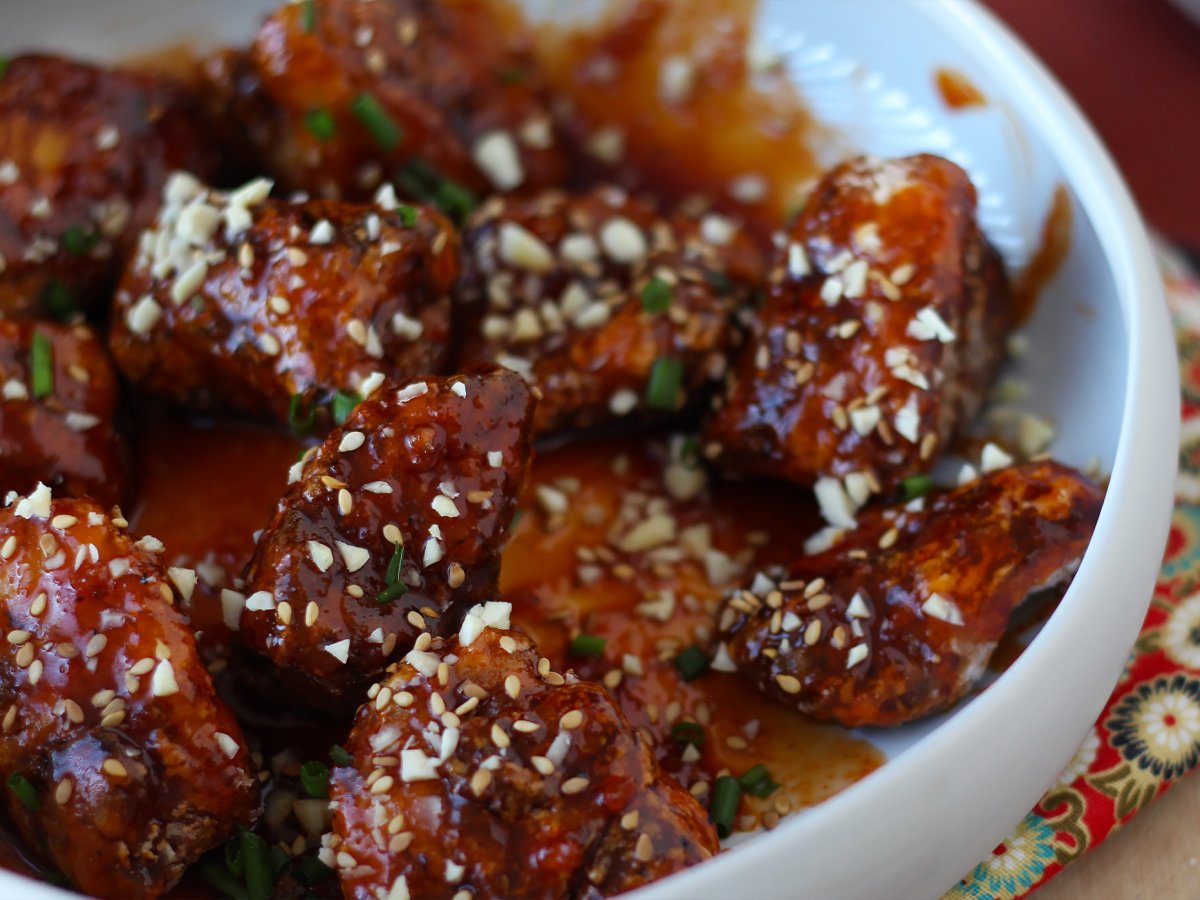 Pui prăjit coreean cu sos picant gochujang - dakgangjeong